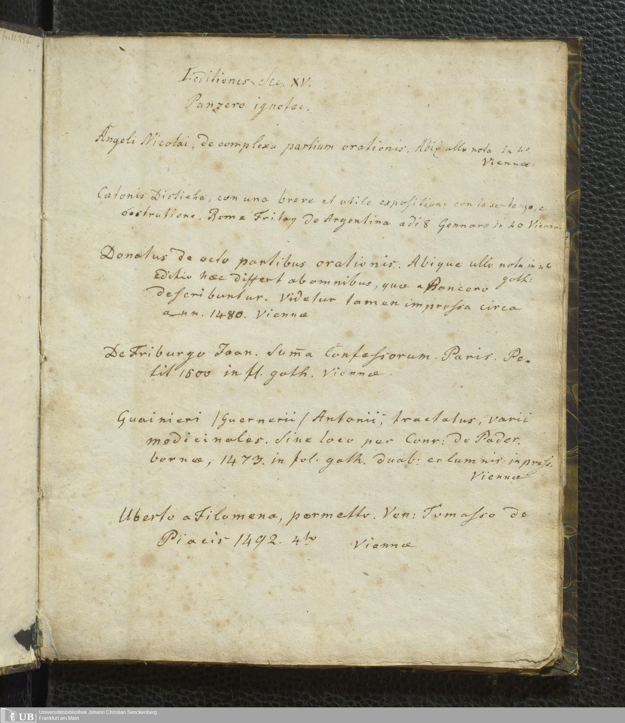 Ms. Ff. G. Kloß VI.4 - Editiones saeculi XV. Panzero ignotae