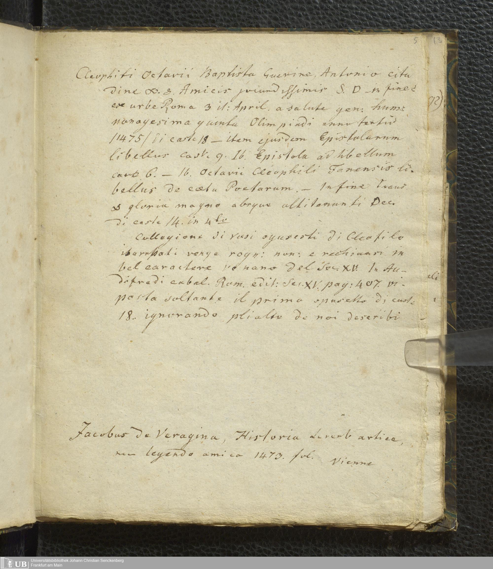 Ms. Ff. G. Kloß VI.4 - Editiones saeculi XV. Panzero ignotae