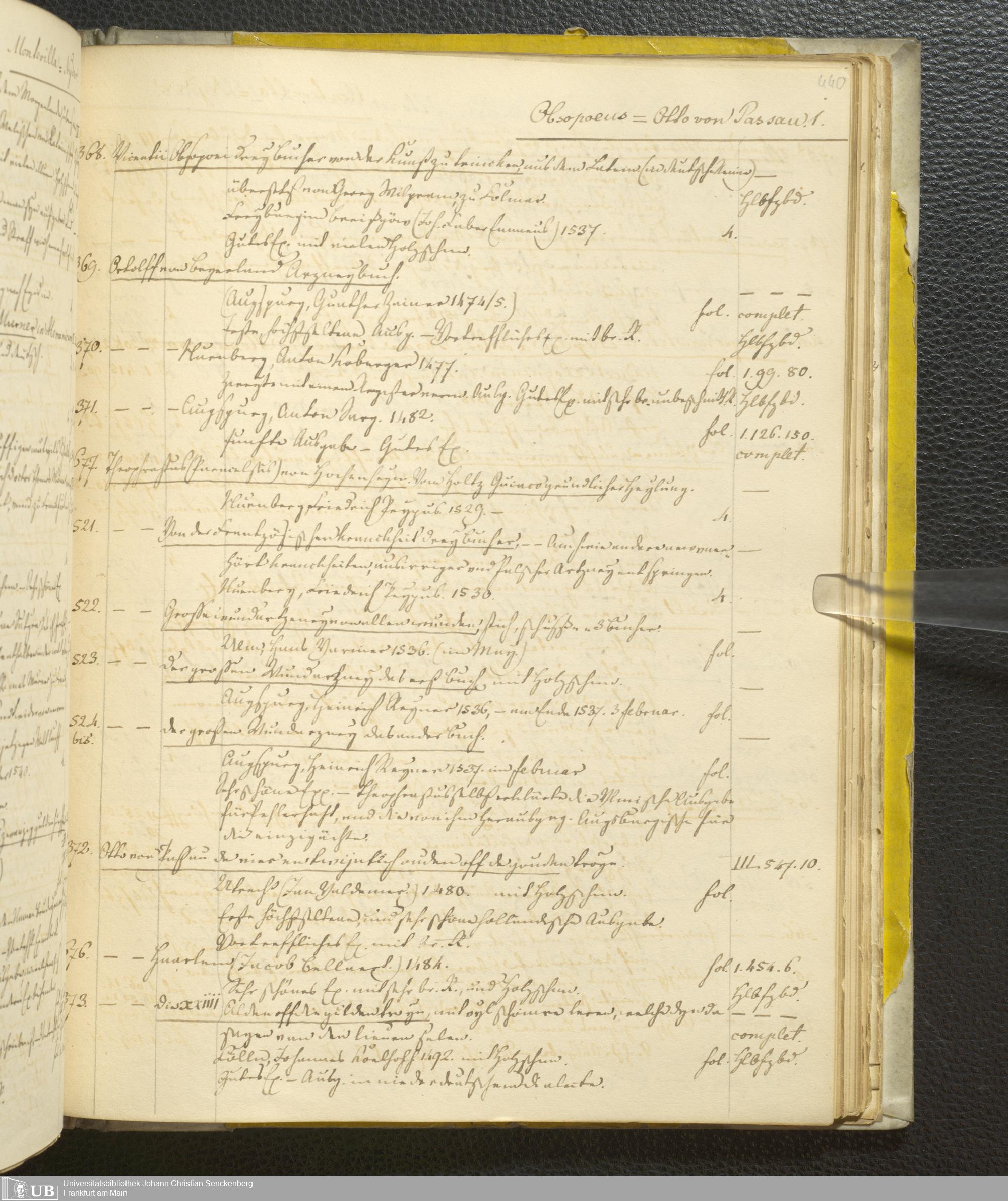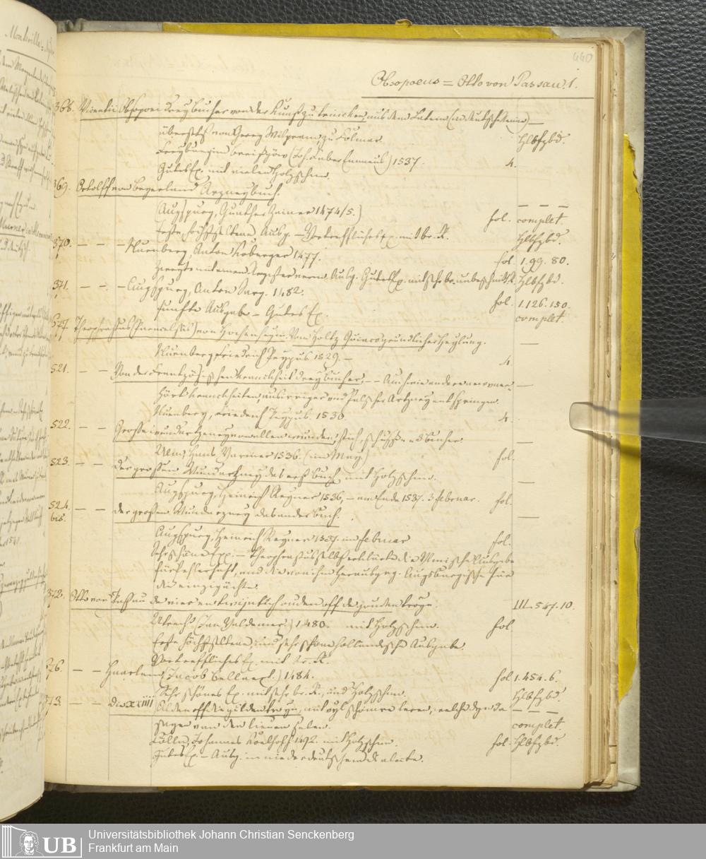 Ms. Ff. G. Kloß III.1 - Catalogus librorum palaeotyporum et manuscriptorum Georgii Klossii