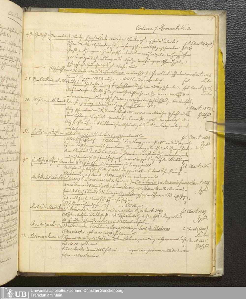 Ms. Ff. G. Kloß III.1 - Catalogus librorum palaeotyporum et manuscriptorum Georgii Klossii