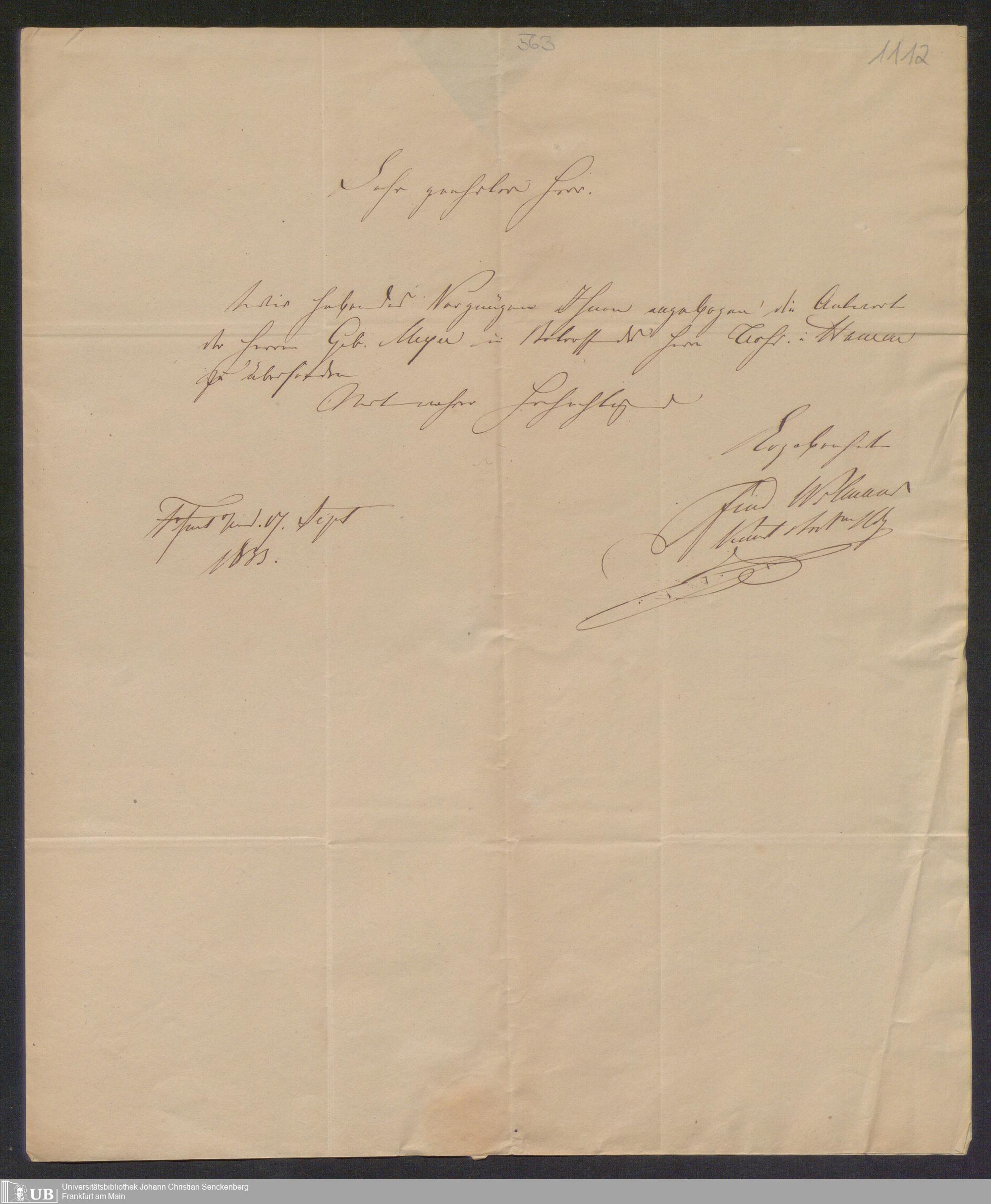 Ms. Ff. G. Kloß I.A - A. Briefe an Georg Kloss