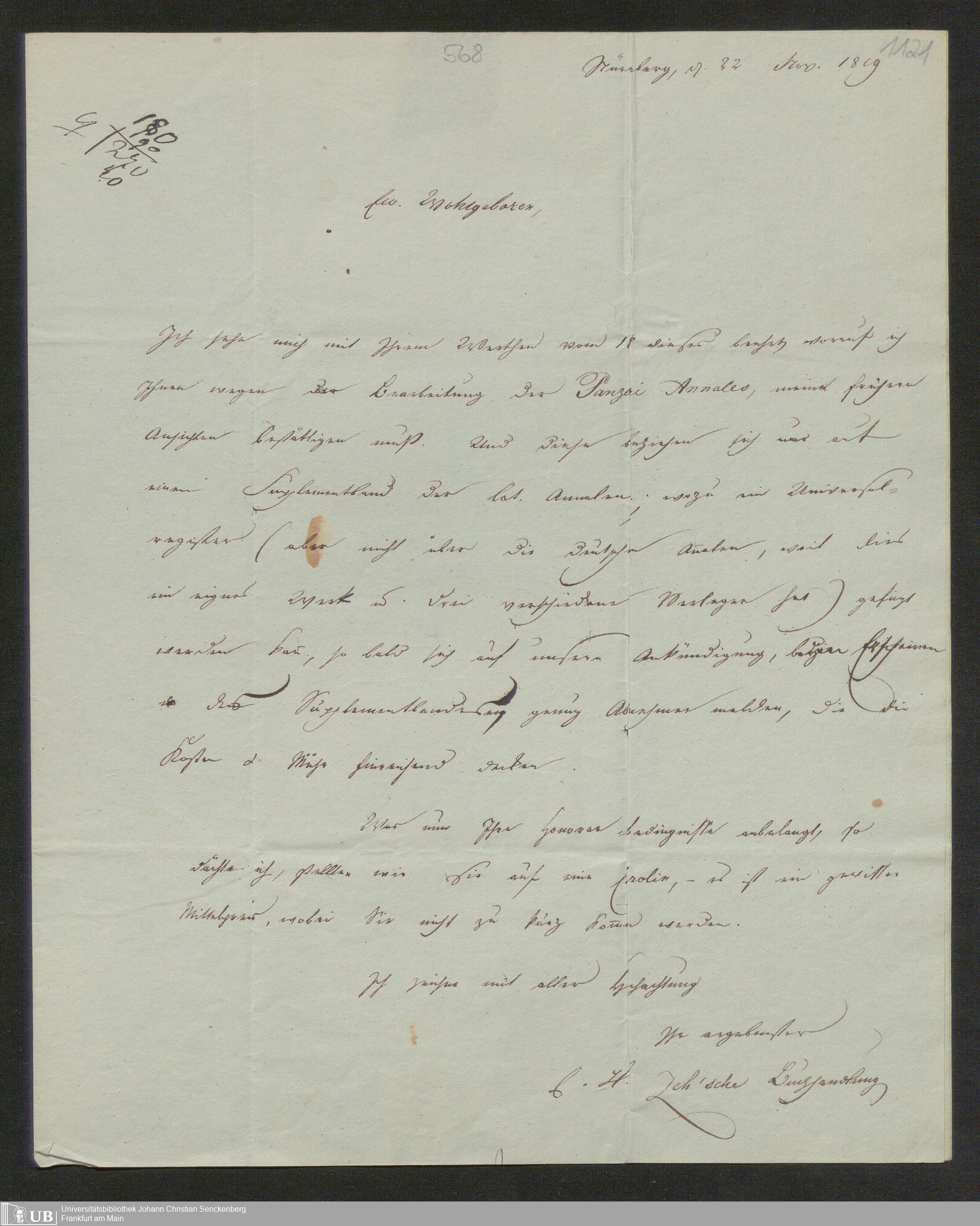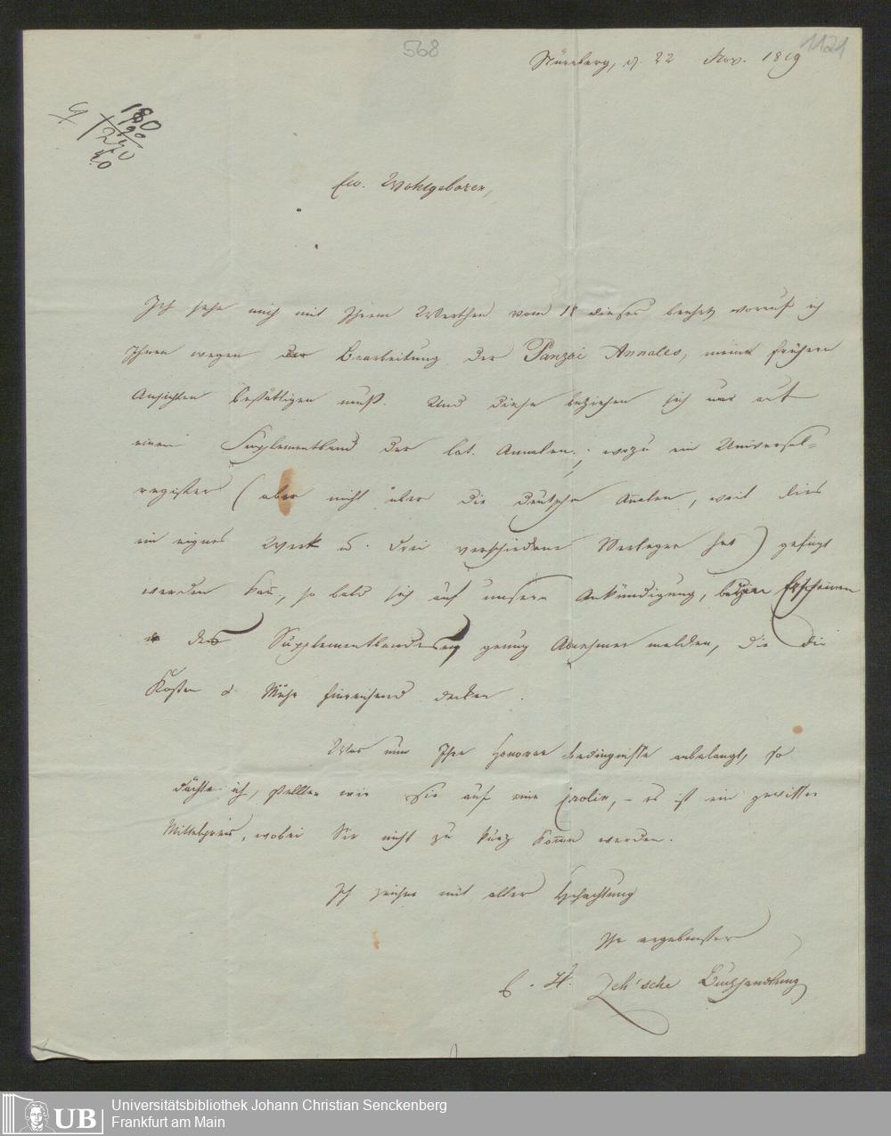 Ms. Ff. G. Kloß I.A - A. Briefe an Georg Kloss