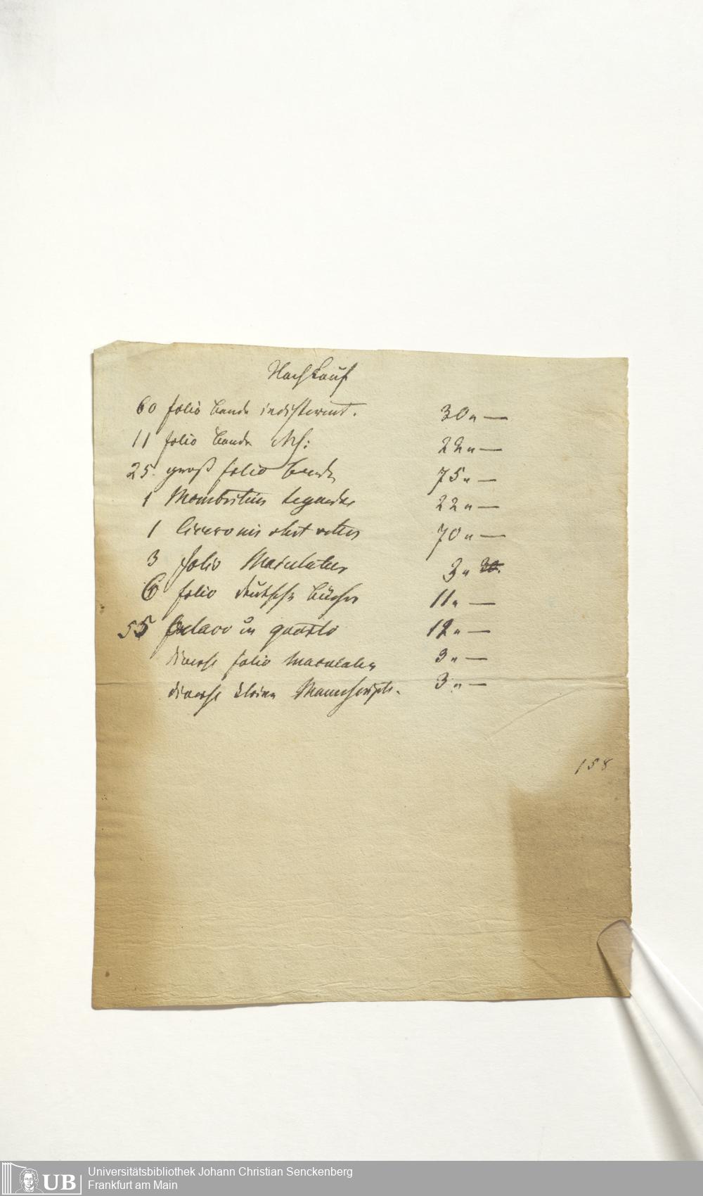 Ms. Ff. G. Kloß Nachlaßergänzung I.8 - Verzeichnis von Inkunabeln und frühen Drucken, alphabetisch nach Autoren und Titeln, sowie von Handschriften