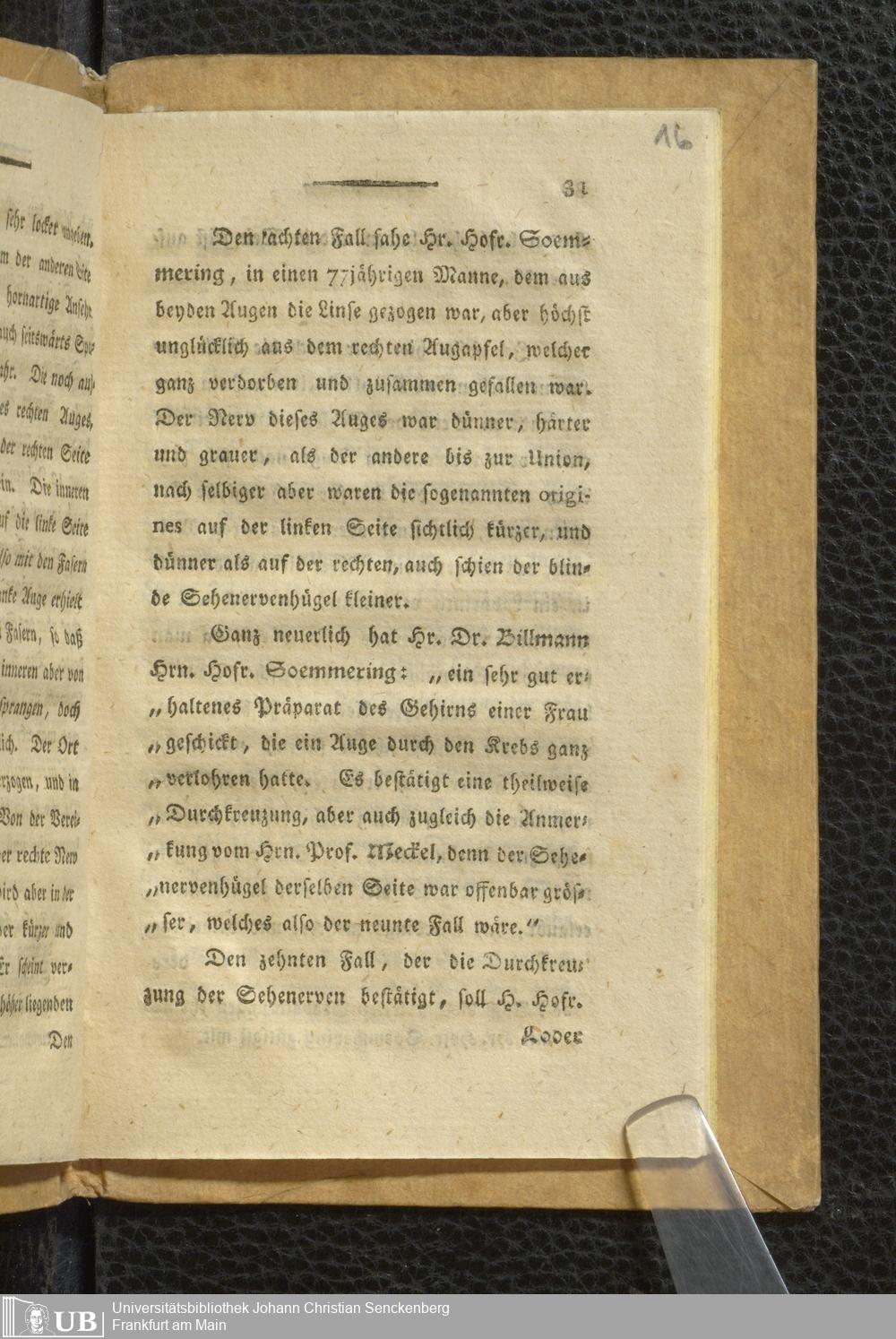 Soe 3 - Über die Durchkreuzung der Sehenerven. Mit einigen Anmerkungen vom Herrn Hofrath Soemmering