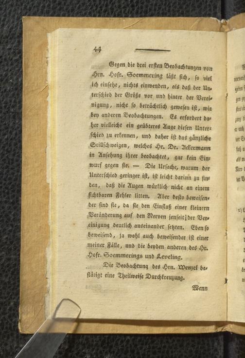 Soe 3 - Über die Durchkreuzung der Sehenerven. Mit einigen Anmerkungen vom Herrn Hofrath Soemmering