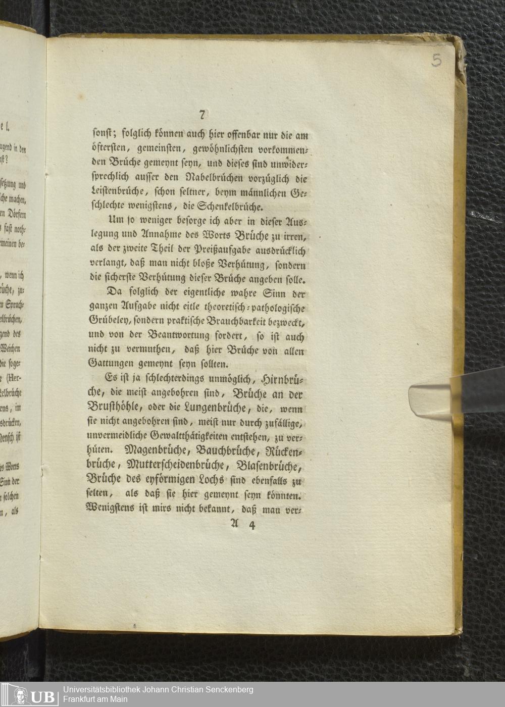 Soe 9 - Über Ursache und Verhütung der Nabel- und Leistenbrüche. Eine von der königlichen Societät der Wissenschaften zu Göttingen gekrönte Preißschrift