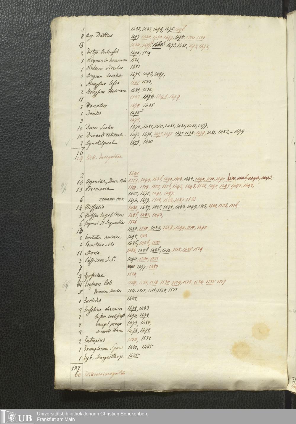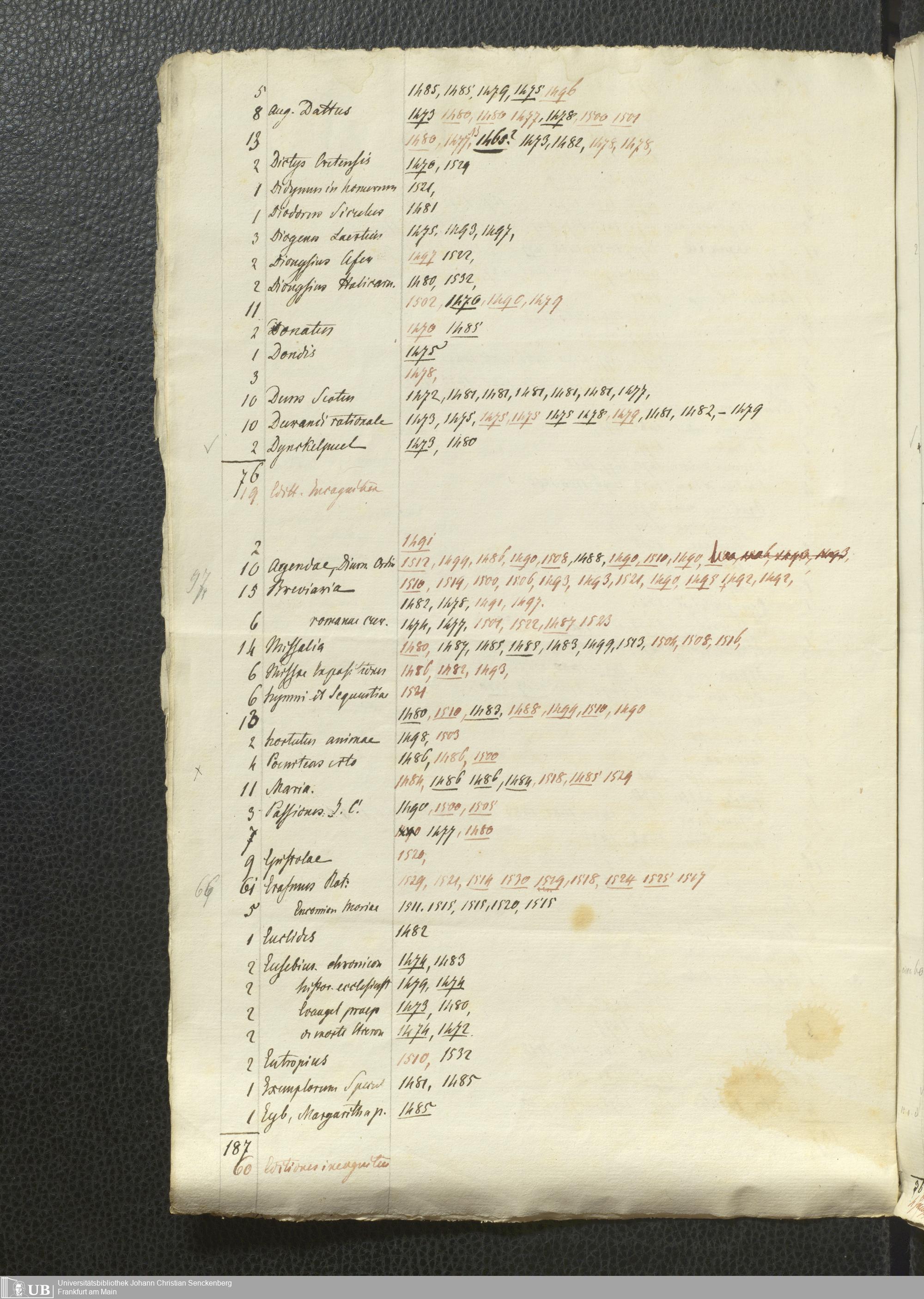 Ms. Ff. G. Kloß Nachlaßergänzung I.5 - Verzeichnis früher Drucke, alphabetisch nach Autoren und Titeln