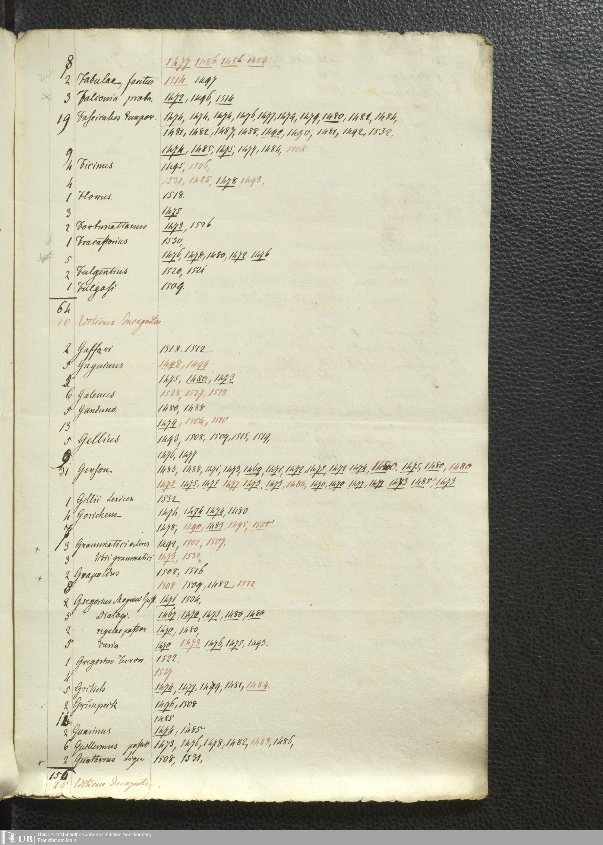 Ms. Ff. G. Kloß Nachlaßergänzung I.5 - Verzeichnis früher Drucke, alphabetisch nach Autoren und Titeln