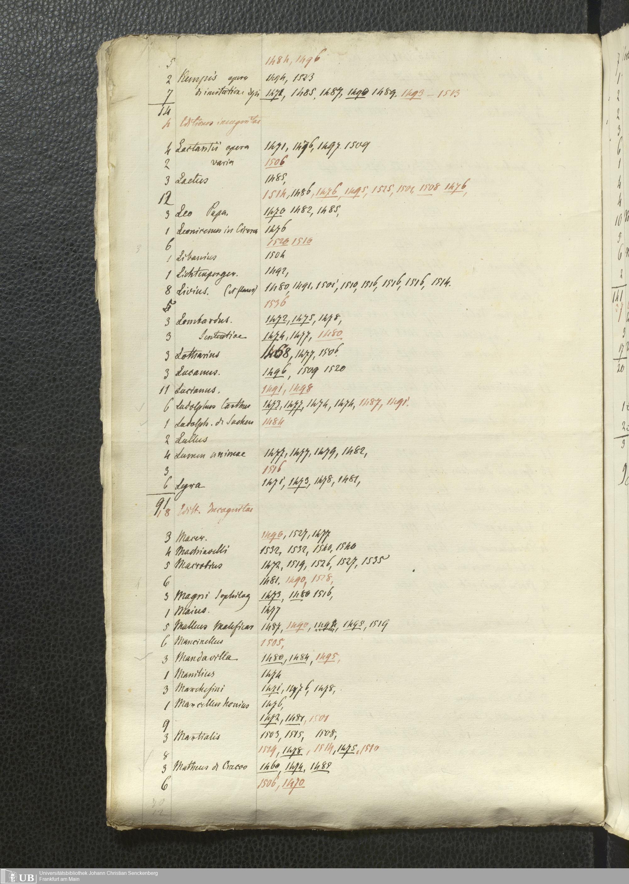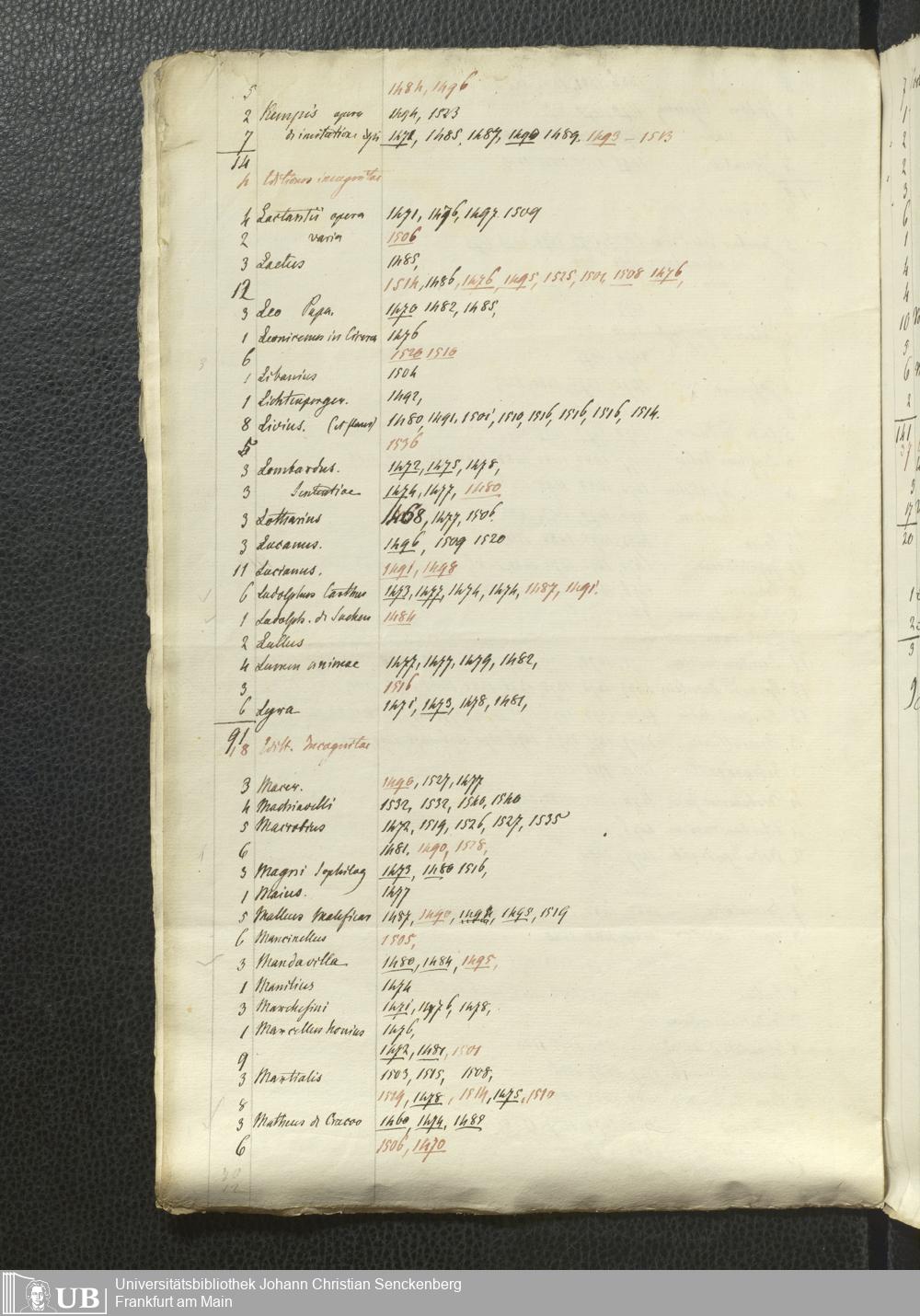 Ms. Ff. G. Kloß Nachlaßergänzung I.5 - Verzeichnis früher Drucke, alphabetisch nach Autoren und Titeln