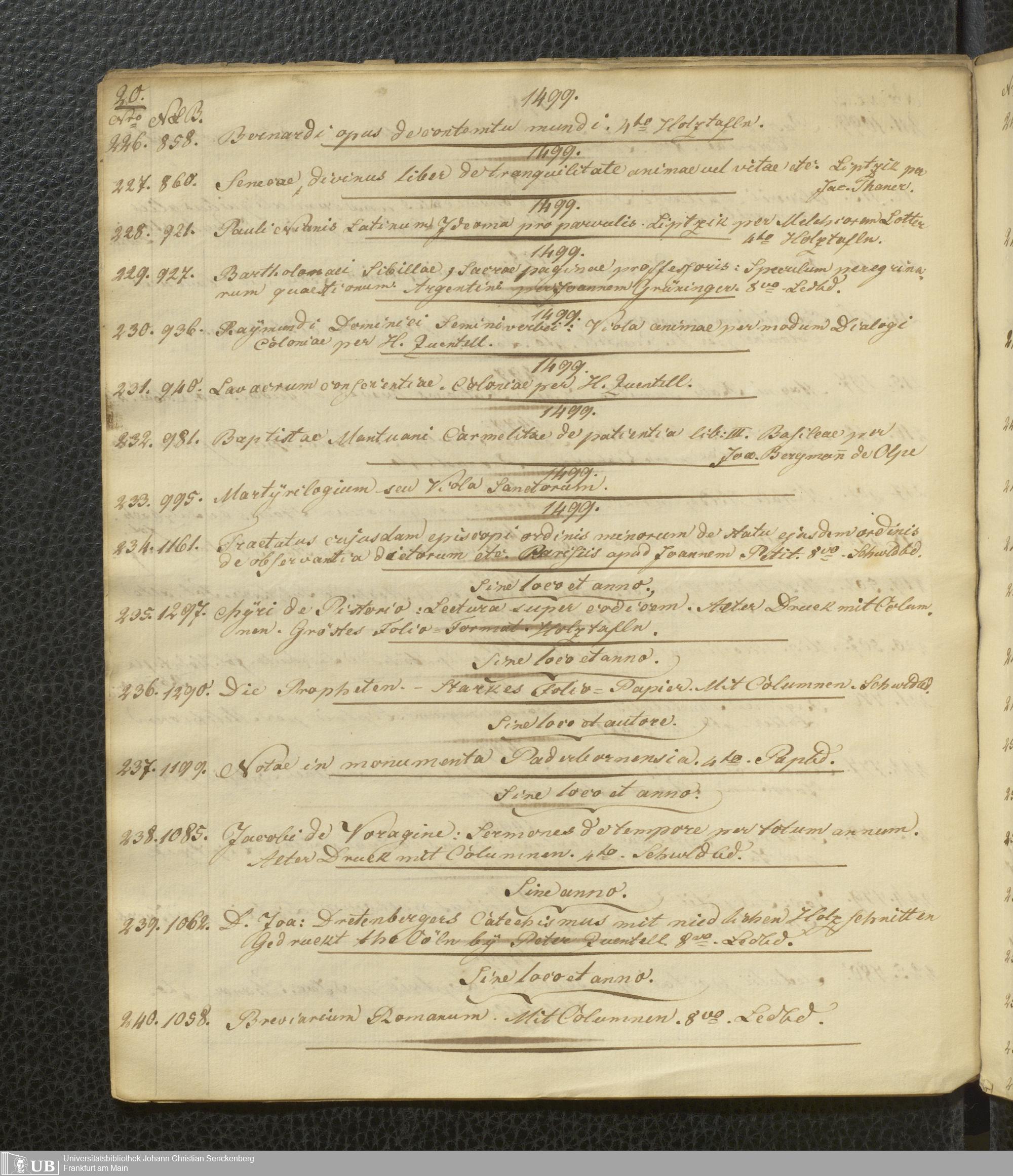 Ms. Ff. G. Kloß Nachlaßergänzung I.6 - II. Impressa von 1440 - 1509