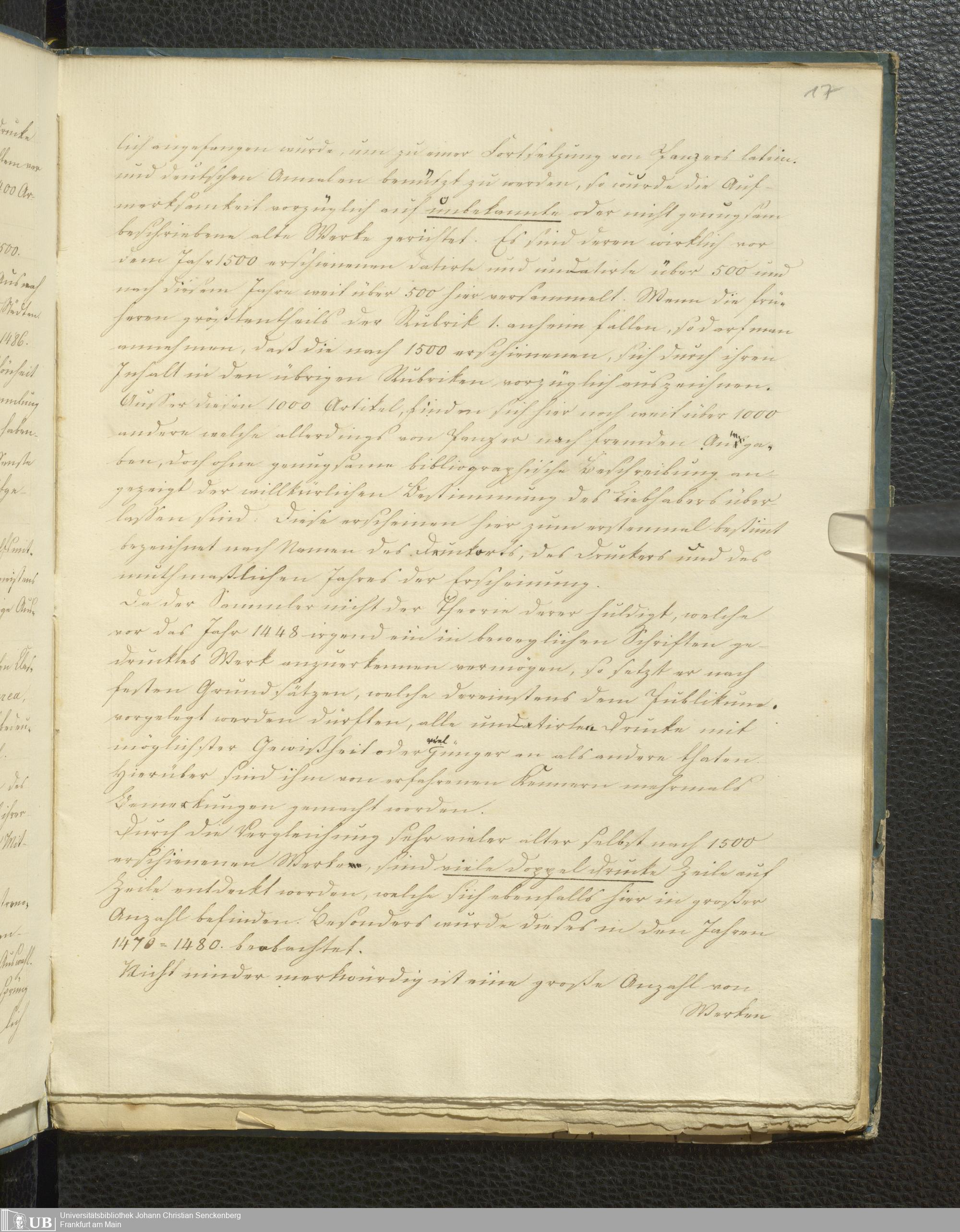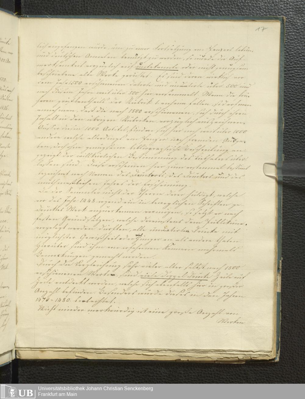 Ms. Ff. G. Kloß V.5 - Bibliotheca Palaeotyporum Georgii Kloss. M.D. Beschreibung und Plan der Sammlung 13 Julius 1834.