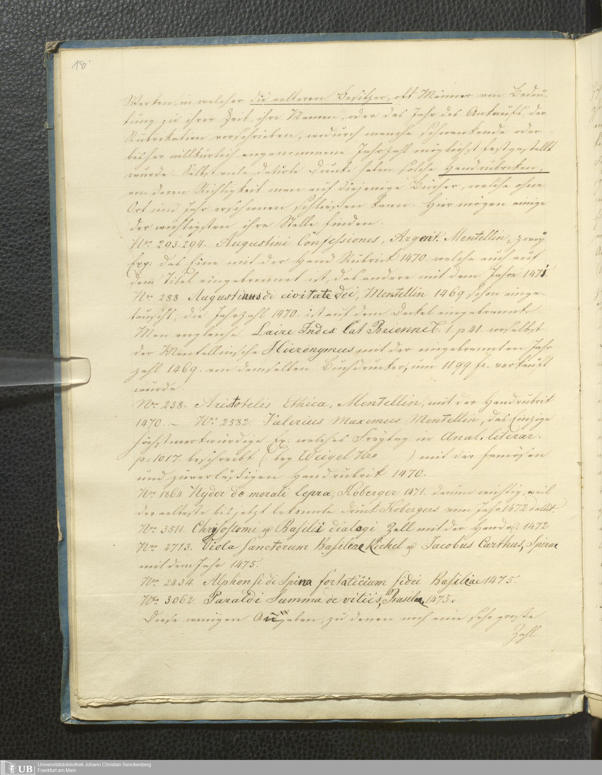 Ms. Ff. G. Kloß V.5 - Bibliotheca Palaeotyporum Georgii Kloss. M.D. Beschreibung und Plan der Sammlung 13 Julius 1834.