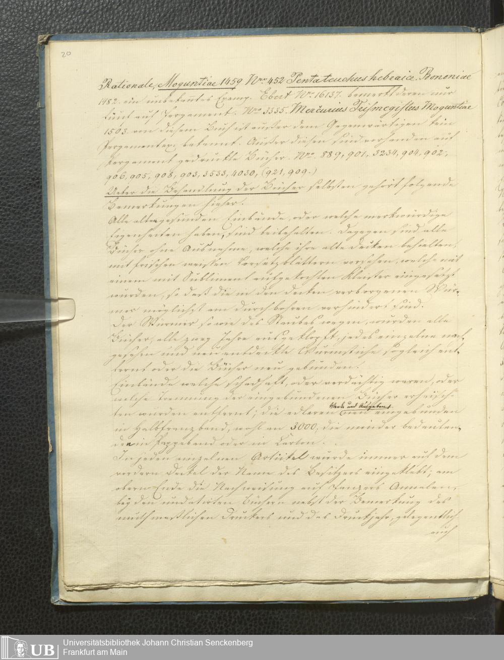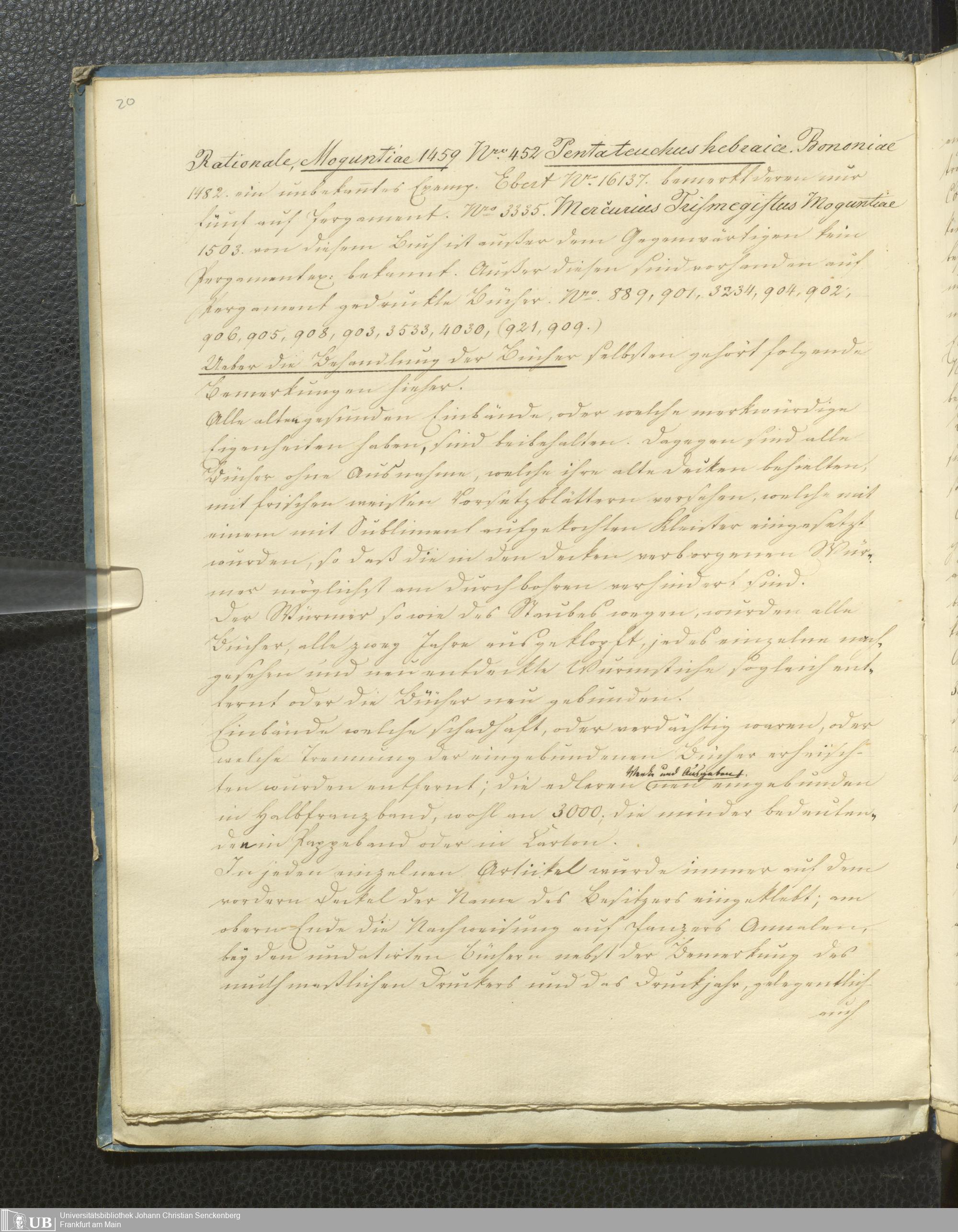 Ms. Ff. G. Kloß V.5 - Bibliotheca Palaeotyporum Georgii Kloss. M.D. Beschreibung und Plan der Sammlung 13 Julius 1834.