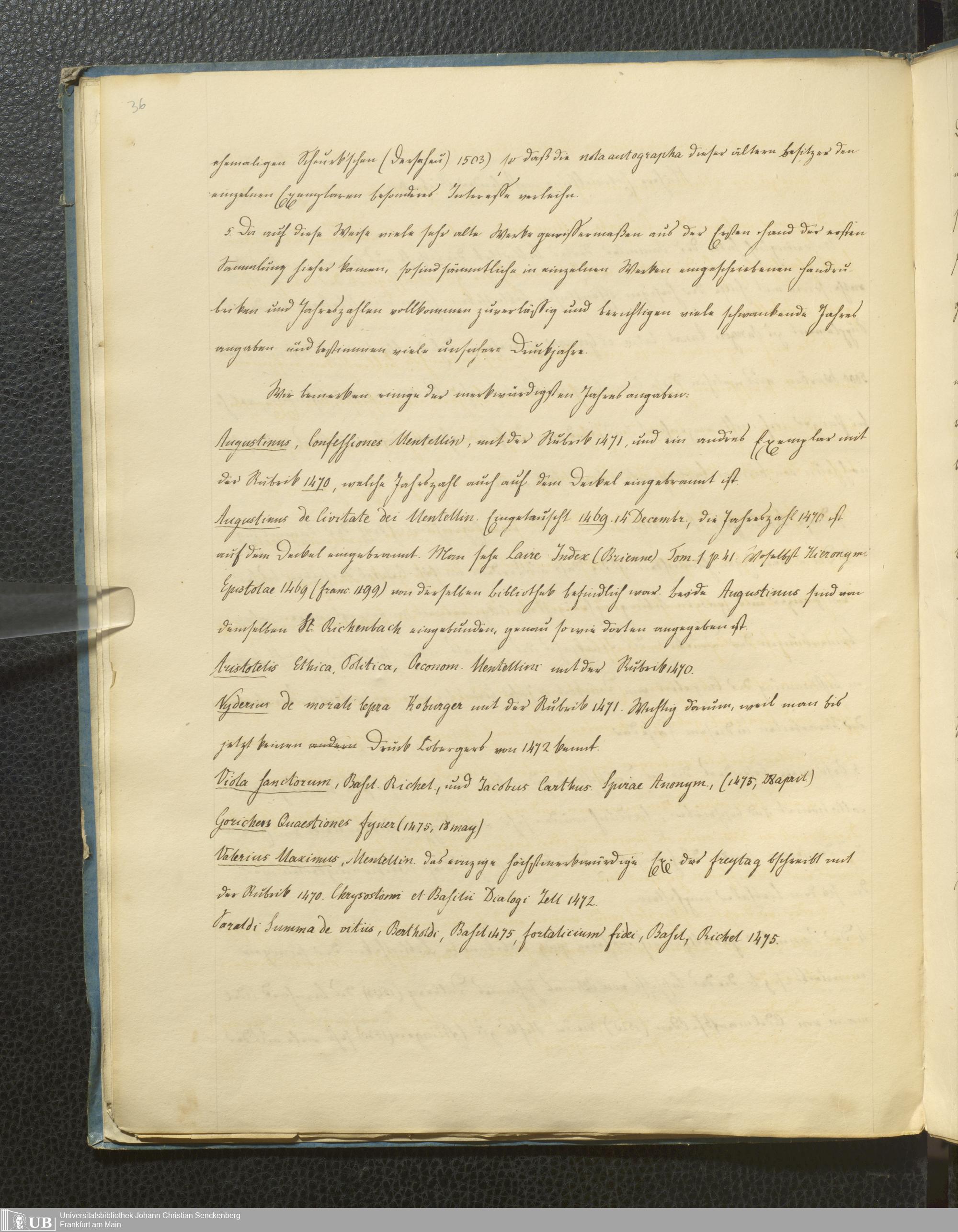 Ms. Ff. G. Kloß V.5 - Bibliotheca Palaeotyporum Georgii Kloss. M.D. Beschreibung und Plan der Sammlung 13 Julius 1834.