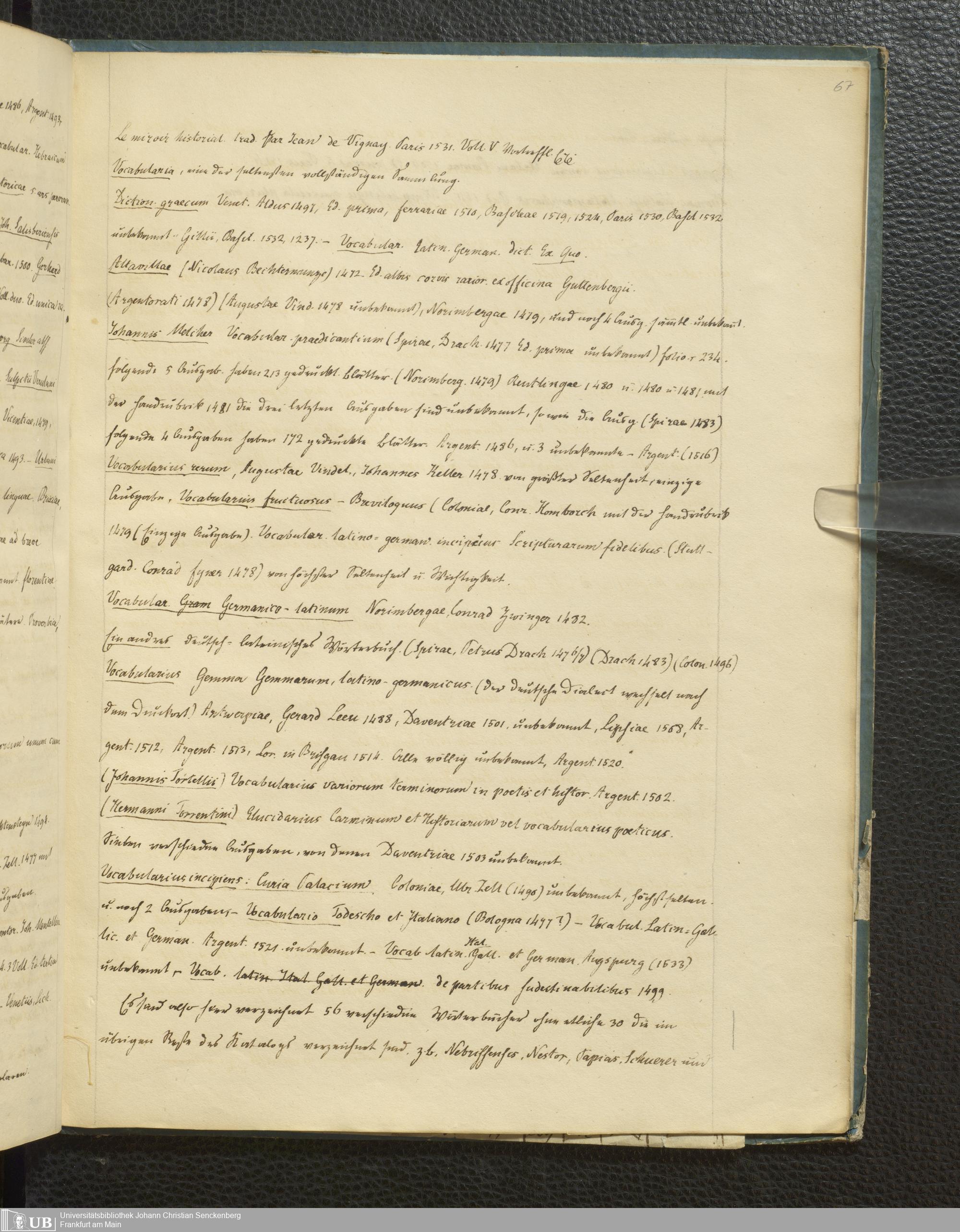Ms. Ff. G. Kloß V.5 - Bibliotheca Palaeotyporum Georgii Kloss. M.D. Beschreibung und Plan der Sammlung 13 Julius 1834.