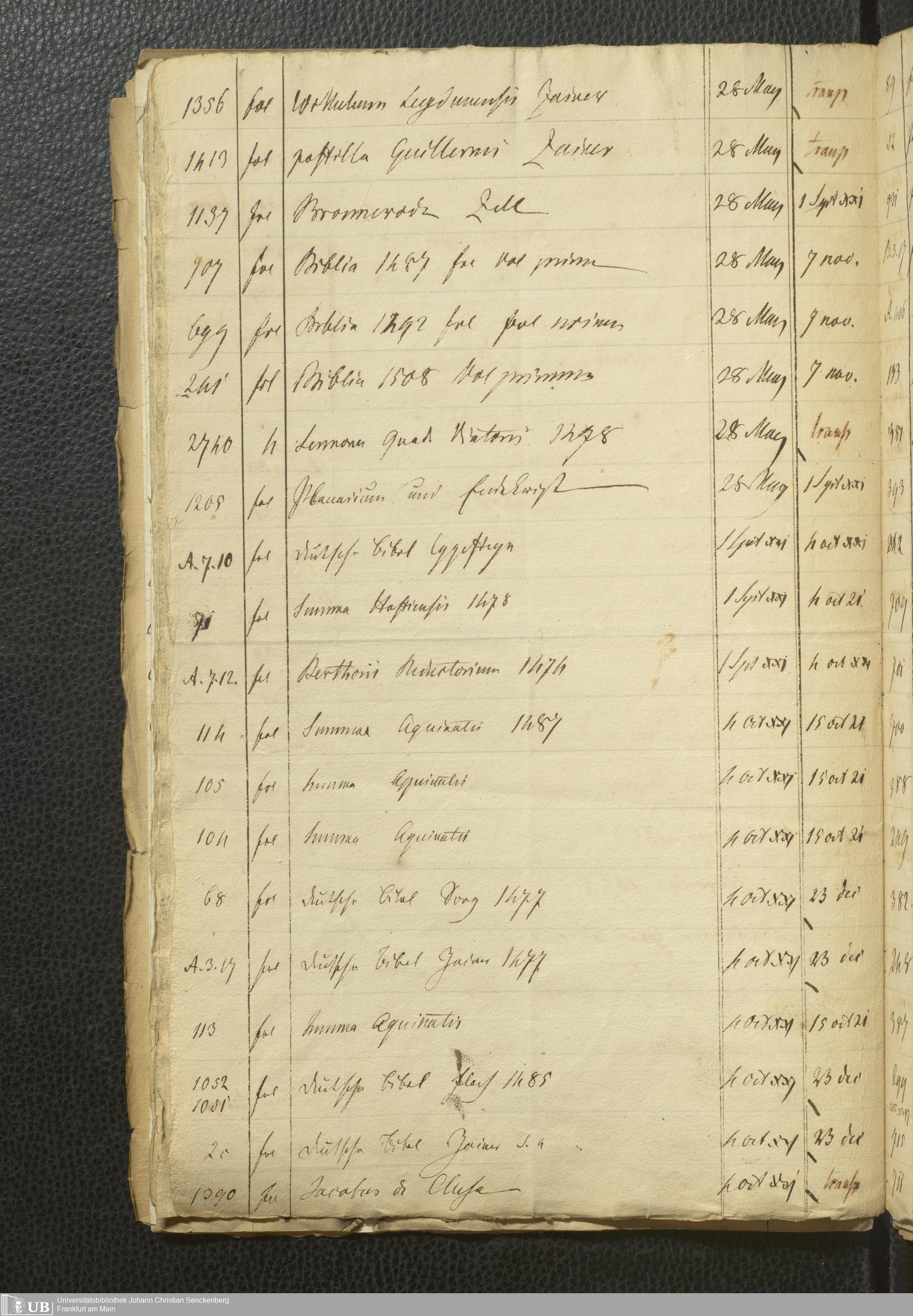 Ms. Ff. G. Kloß Nachlaßergänzung I.4 - Verzeichnis der entliehenen Bücher aus den Bibliotheken des Dominikaner- und des Karmeliterklosters in Frankfurt am Main