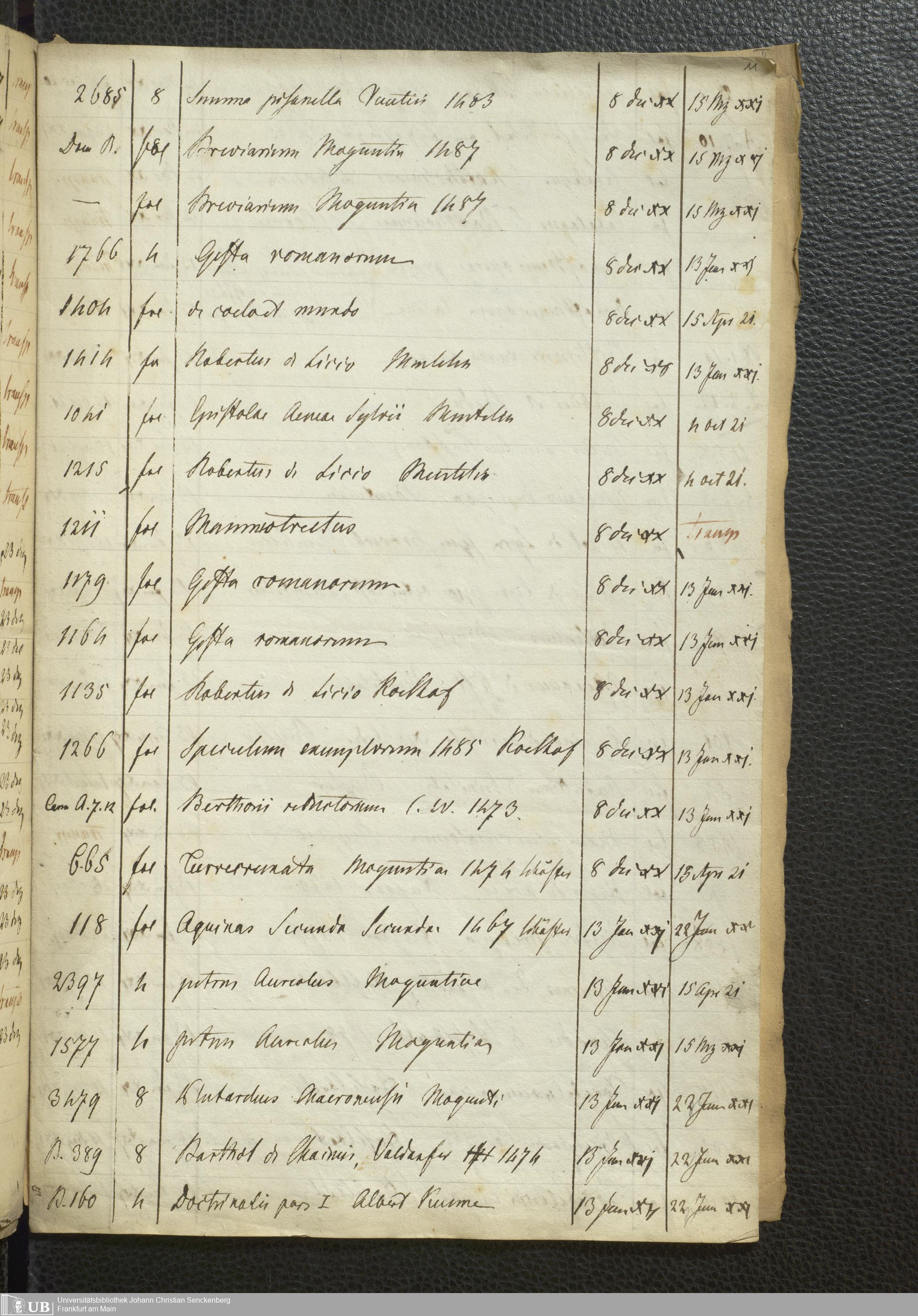 Ms. Ff. G. Kloß Nachlaßergänzung I.4 - Verzeichnis der entliehenen Bücher aus den Bibliotheken des Dominikaner- und des Karmeliterklosters in Frankfurt am Main