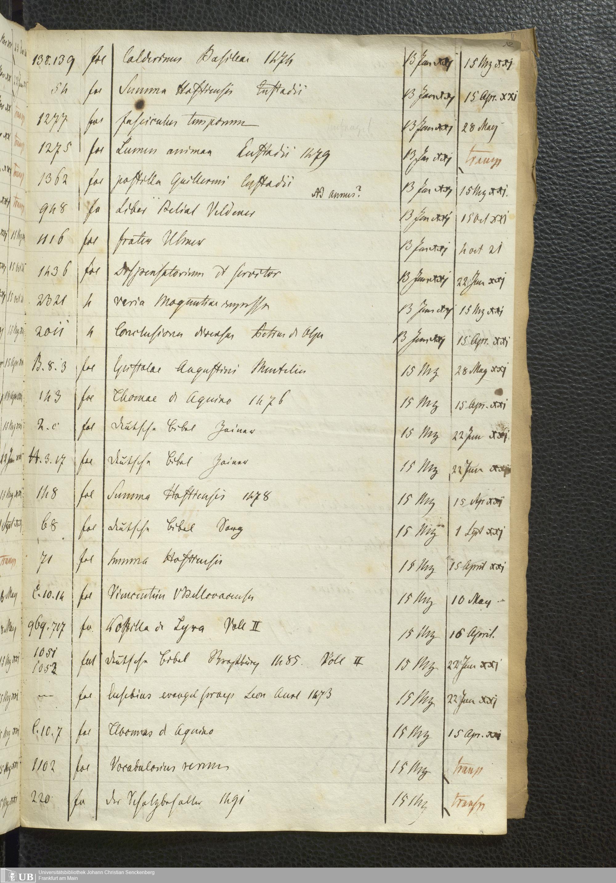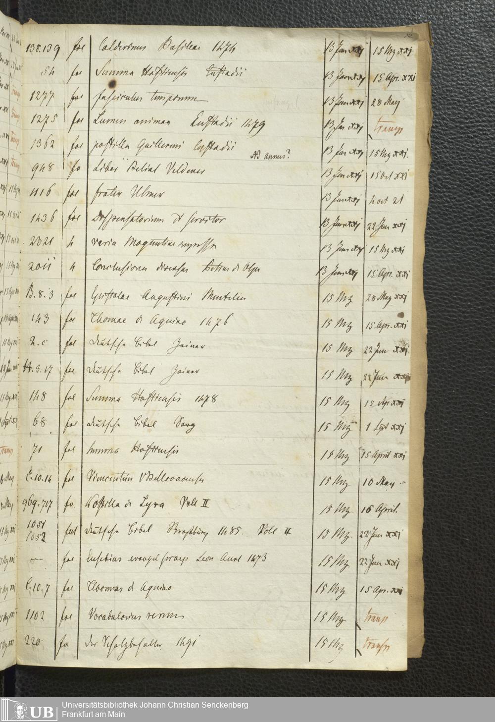 Ms. Ff. G. Kloß Nachlaßergänzung I.4 - Verzeichnis der entliehenen Bücher aus den Bibliotheken des Dominikaner- und des Karmeliterklosters in Frankfurt am Main
