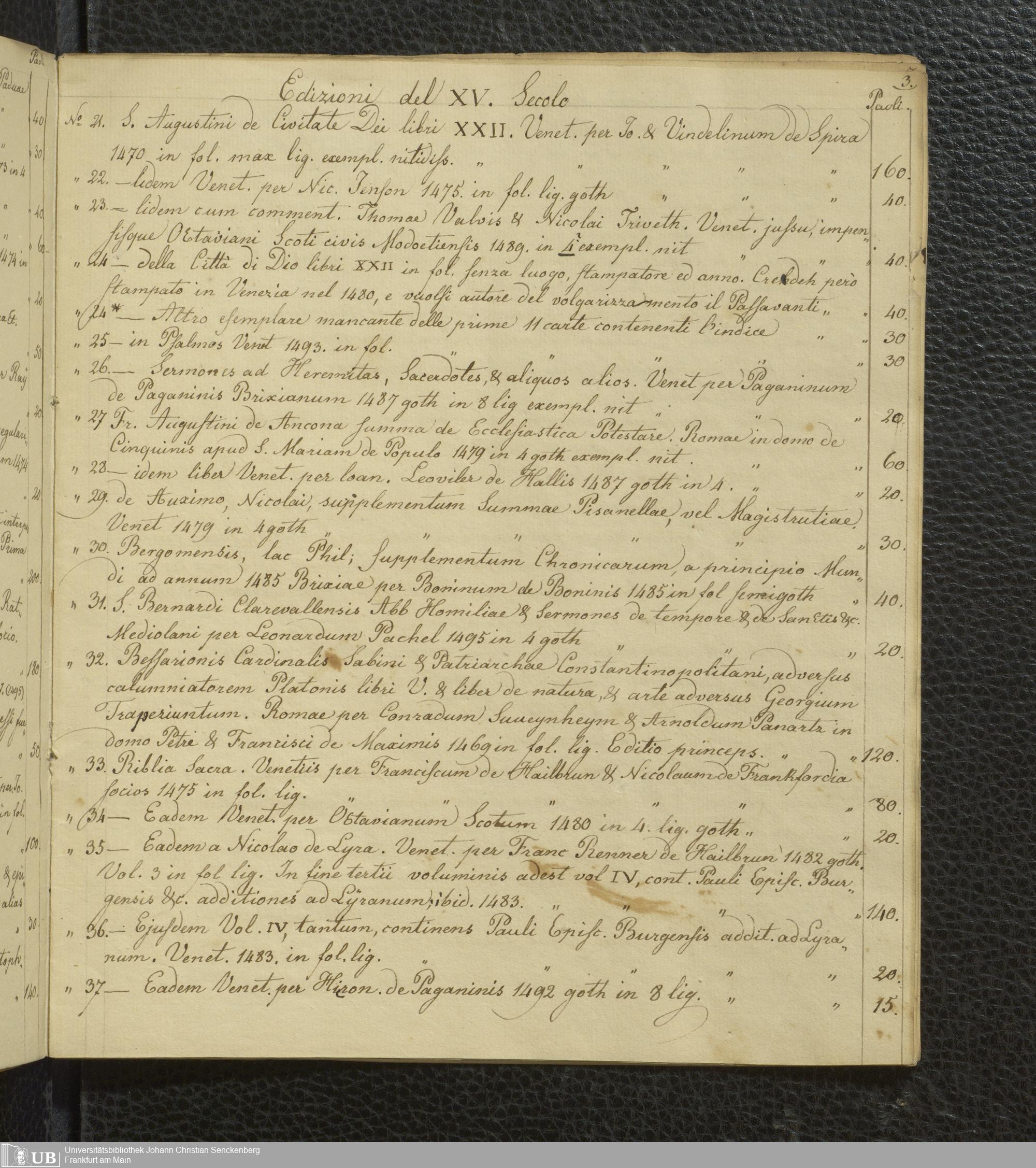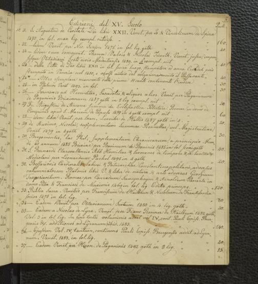Ms. Ff. G. Kloß Nachlaßergänzung I.1 - Edizioni del XV. secolo, libri Aldini, e codici manoscritti che si trovano vendibili presso Giuseppe Molini, mercante di libri in Via degli Archibusieri