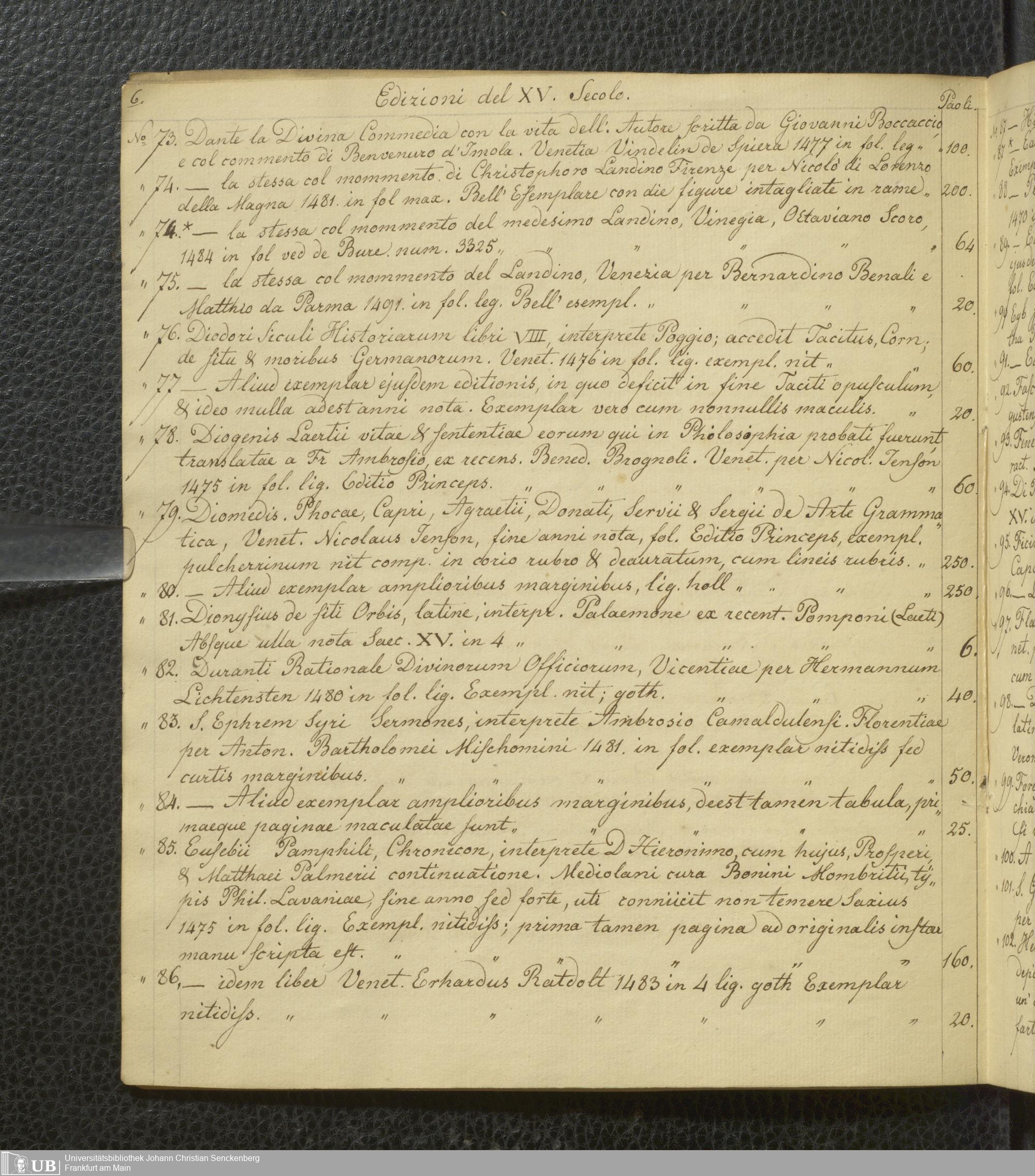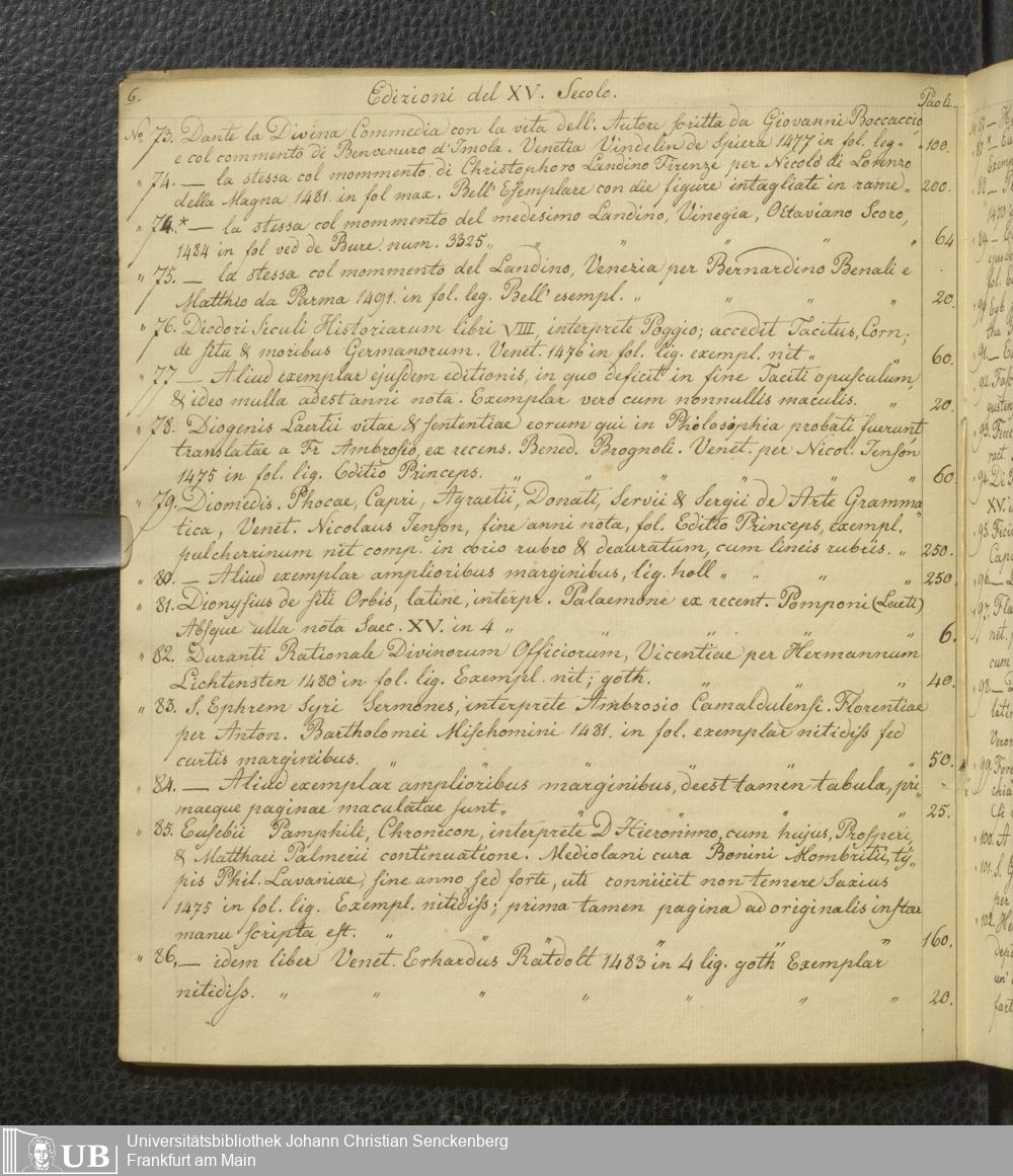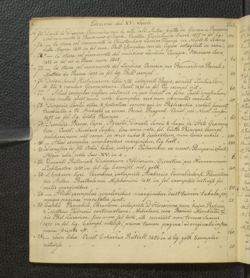 Ms. Ff. G. Kloß Nachlaßergänzung I.1 - Edizioni del XV. secolo, libri Aldini, e codici manoscritti che si trovano vendibili presso Giuseppe Molini, mercante di libri in Via degli Archibusieri
