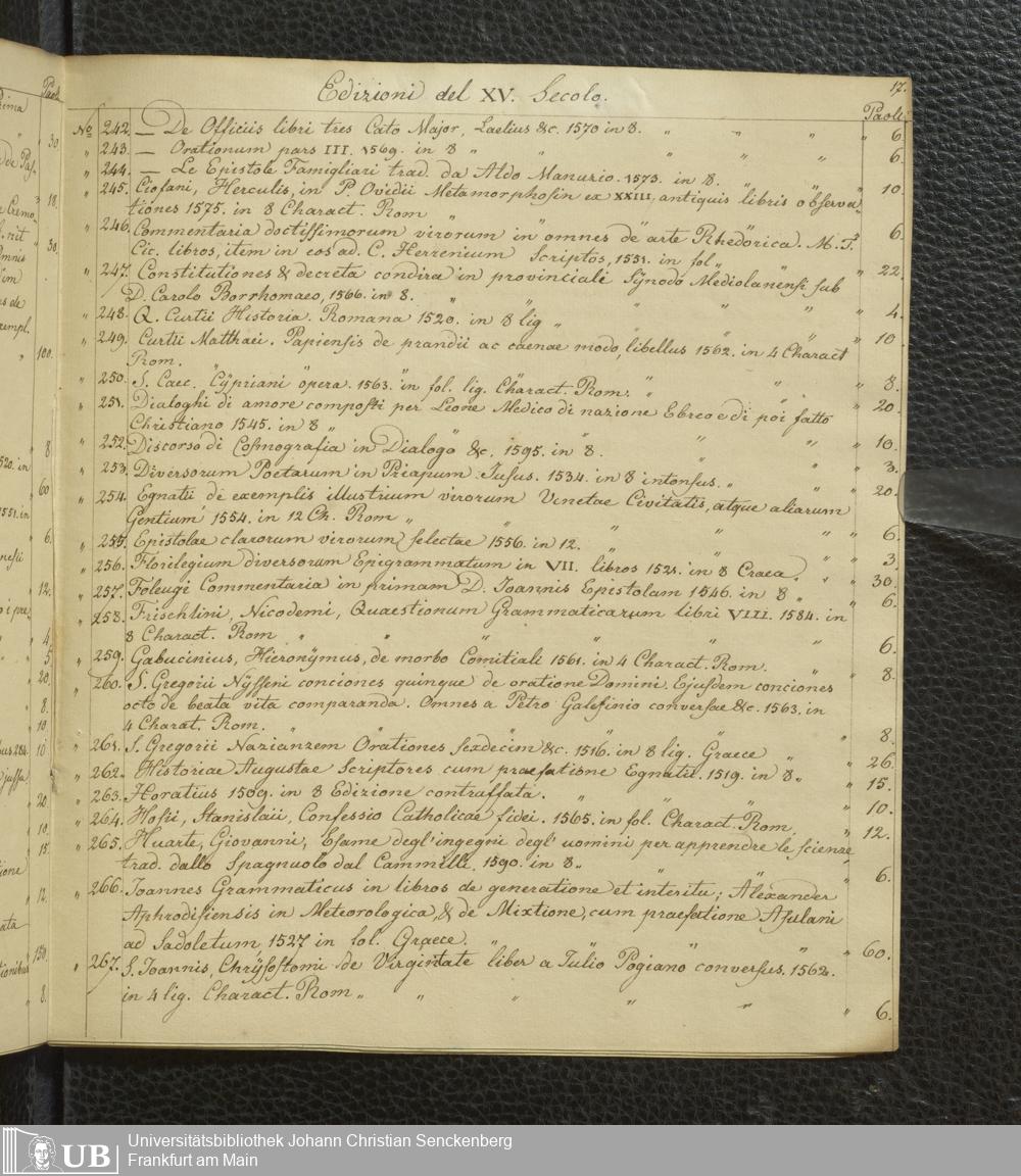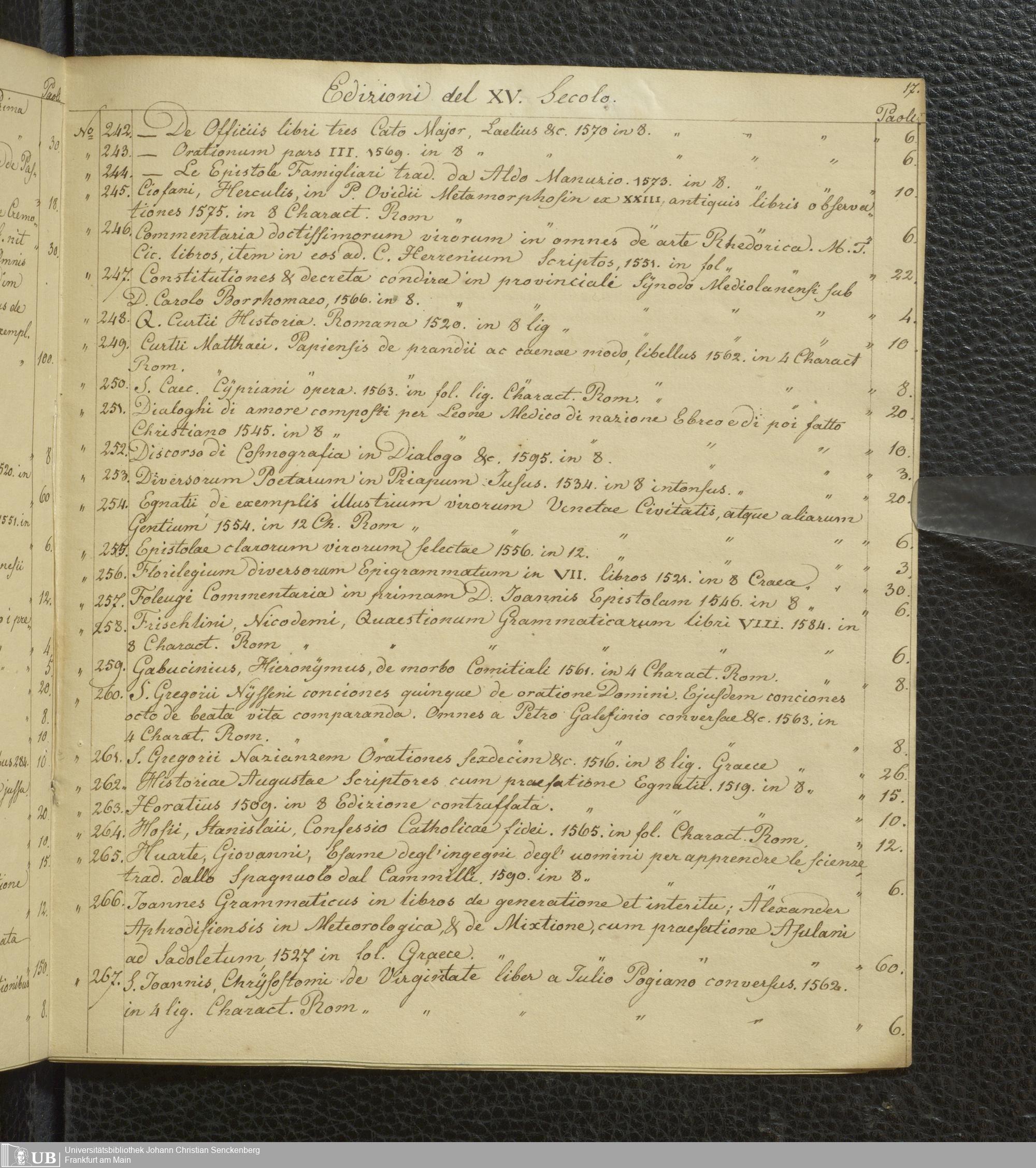 Ms. Ff. G. Kloß Nachlaßergänzung I.1 - Edizioni del XV. secolo, libri Aldini, e codici manoscritti che si trovano vendibili presso Giuseppe Molini, mercante di libri in Via degli Archibusieri