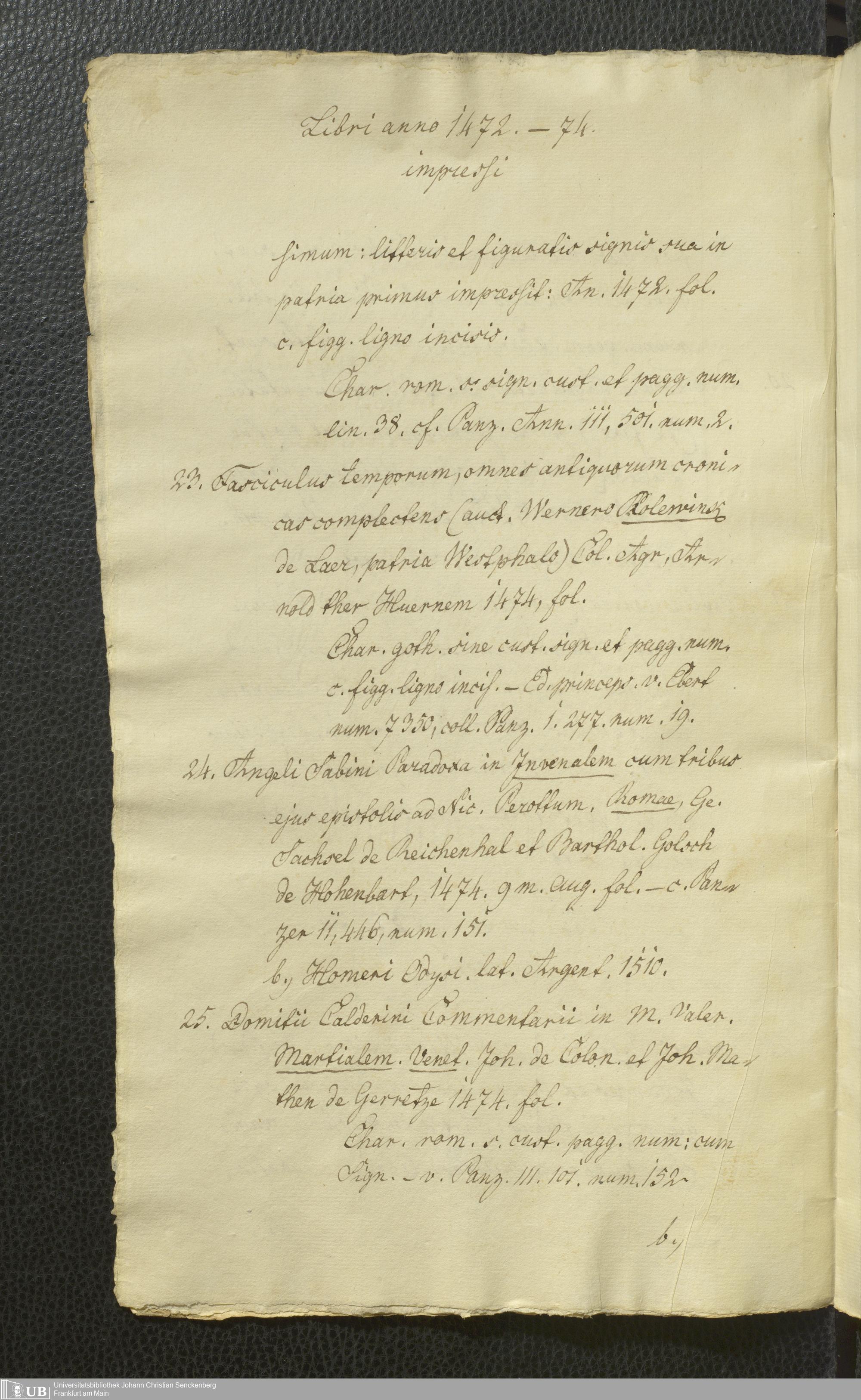 Ms. Ff. G. Kloß Nachlaßergänzung I.2 - Catalogus artis typographicae monumentorum quae in Bibliotheka Laubaco-Solmensi adservantur