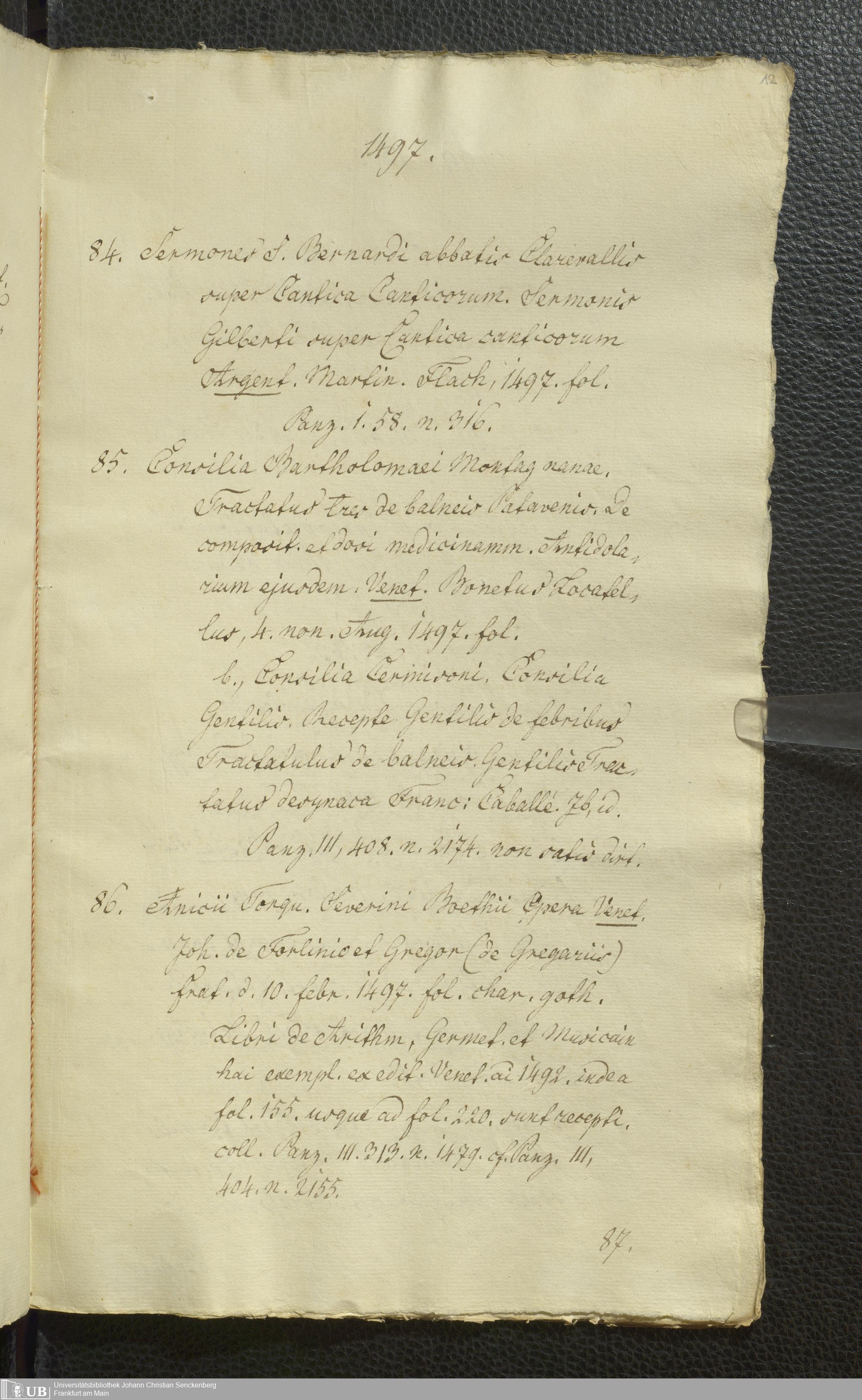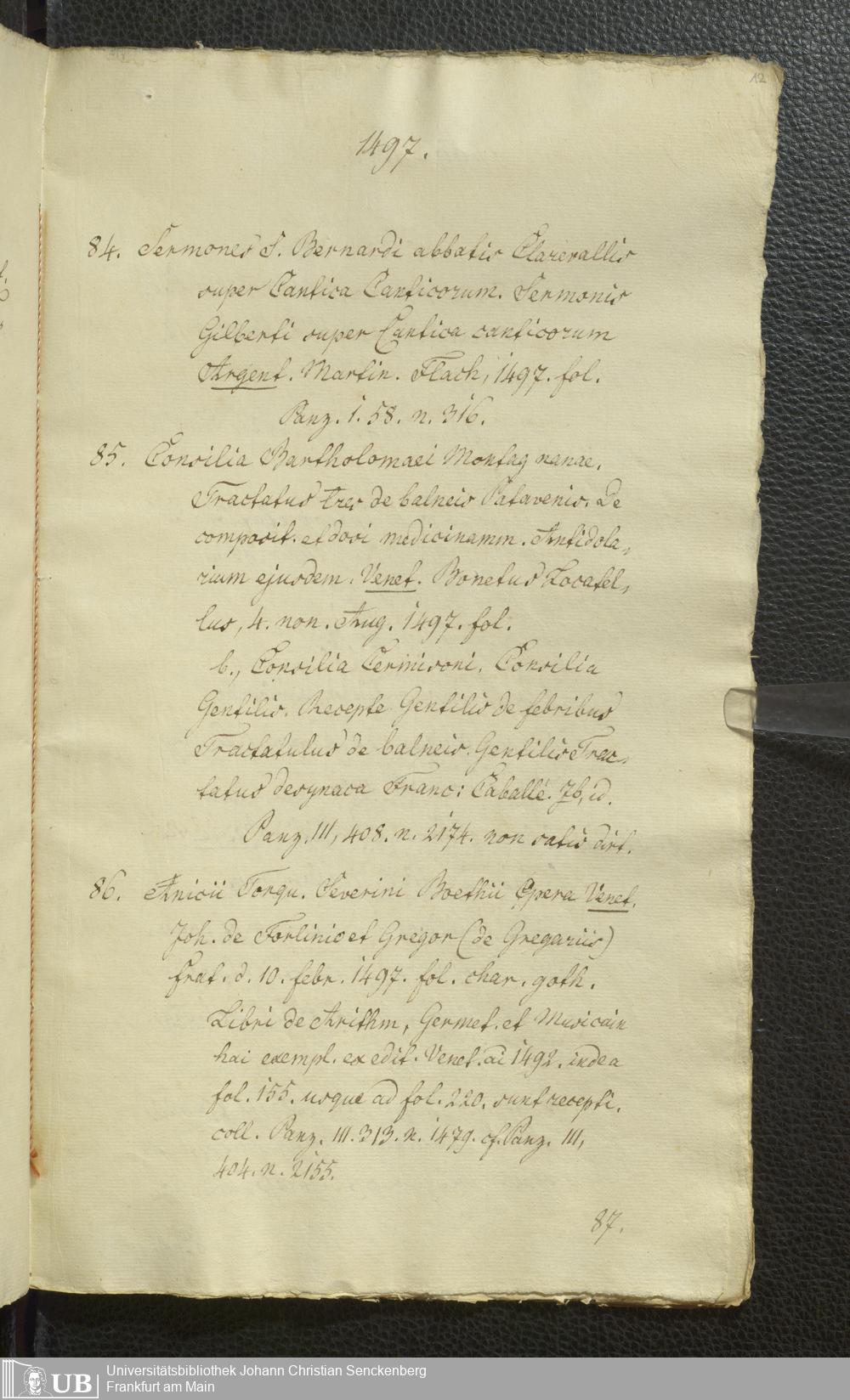 Ms. Ff. G. Kloß Nachlaßergänzung I.2 - Catalogus artis typographicae monumentorum quae in Bibliotheka Laubaco-Solmensi adservantur