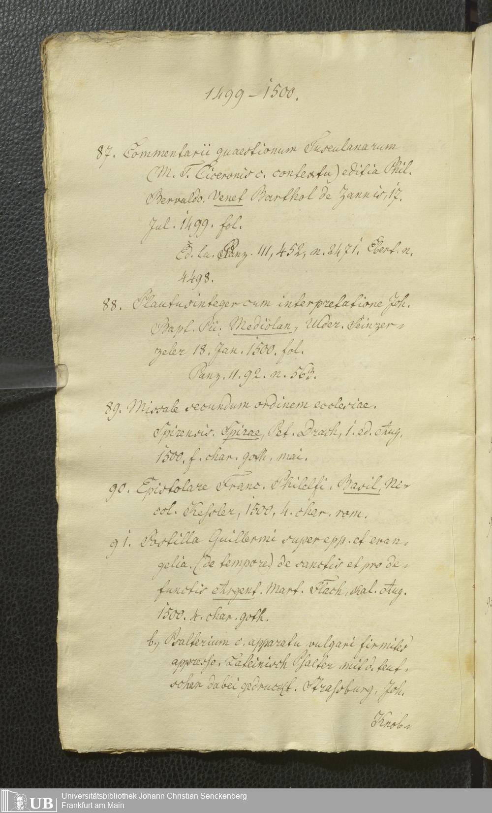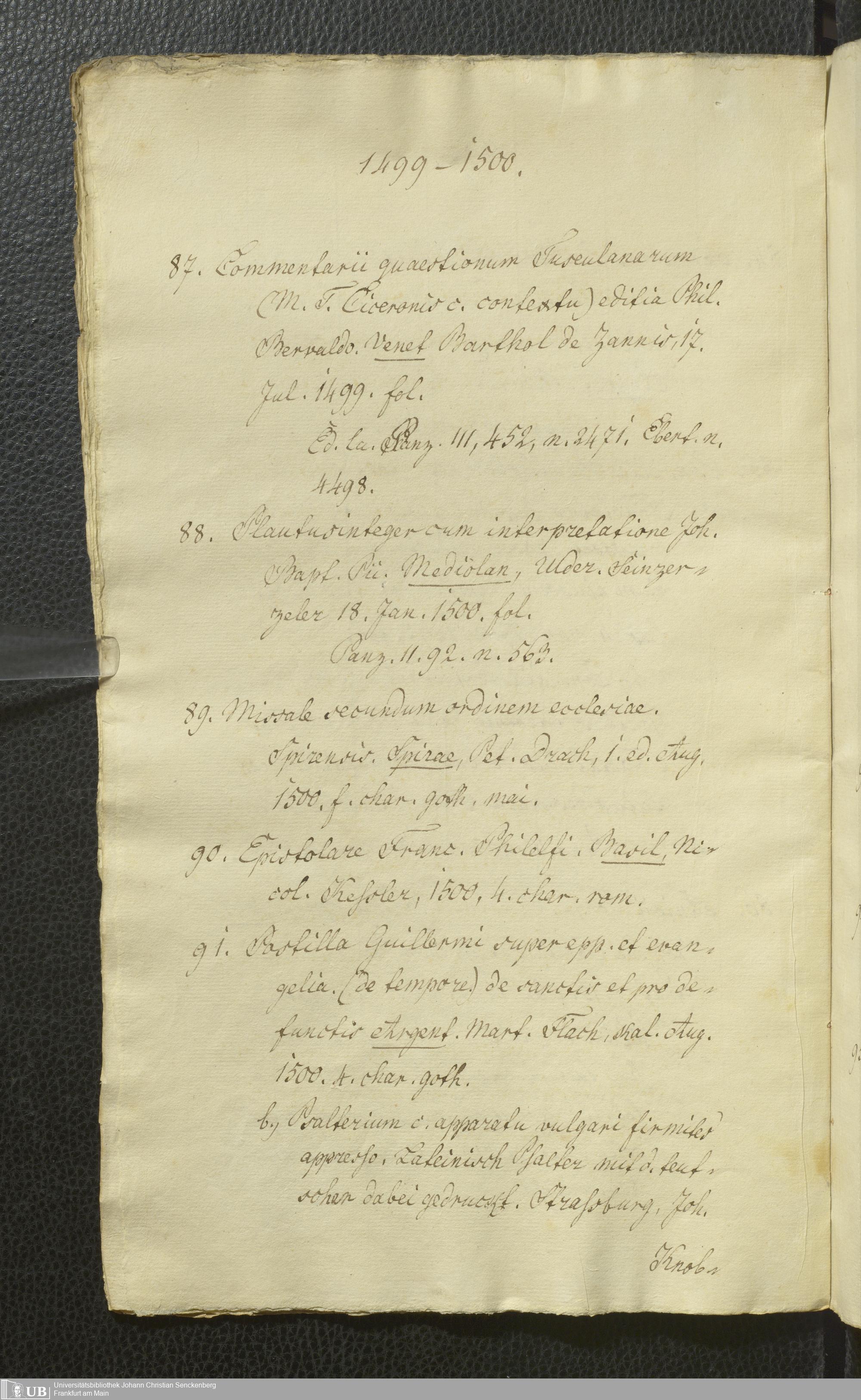 Ms. Ff. G. Kloß Nachlaßergänzung I.2 - Catalogus artis typographicae monumentorum quae in Bibliotheka Laubaco-Solmensi adservantur