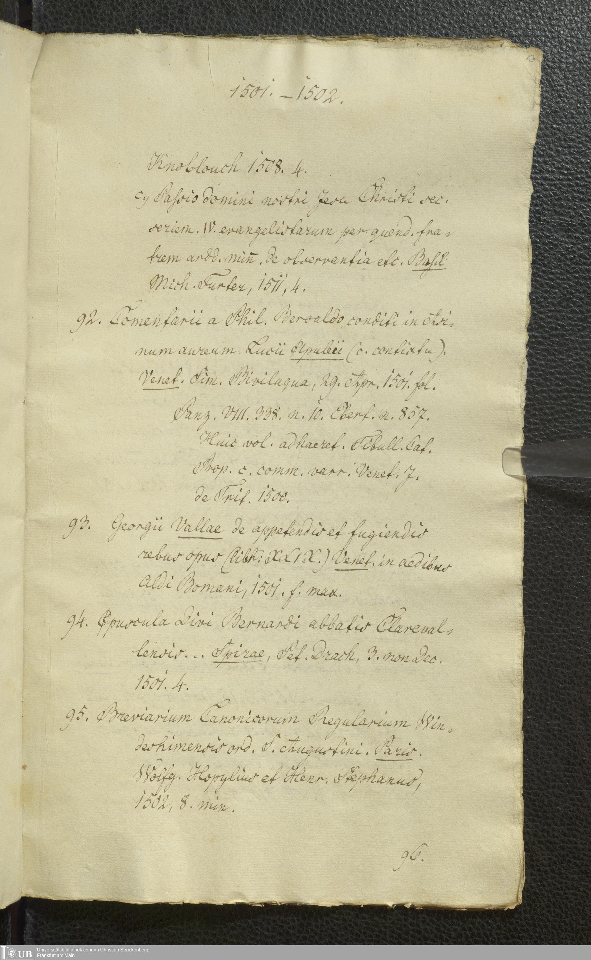 Ms. Ff. G. Kloß Nachlaßergänzung I.2 - Catalogus artis typographicae monumentorum quae in Bibliotheka Laubaco-Solmensi adservantur