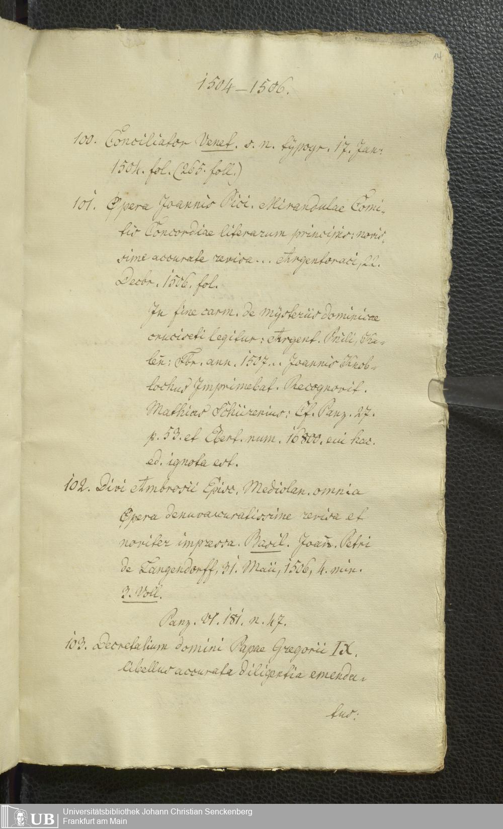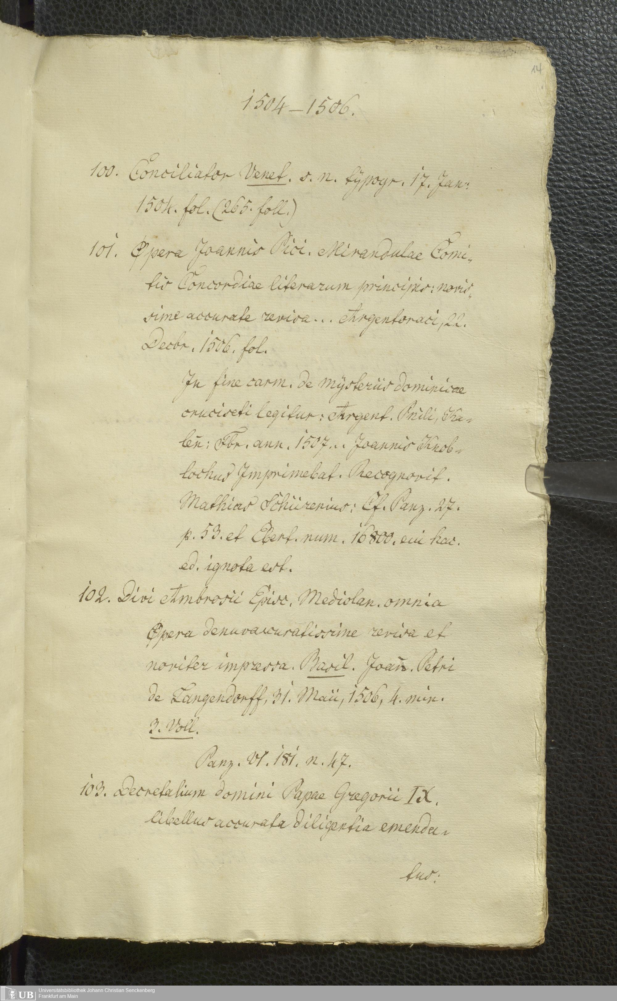 Ms. Ff. G. Kloß Nachlaßergänzung I.2 - Catalogus artis typographicae monumentorum quae in Bibliotheka Laubaco-Solmensi adservantur