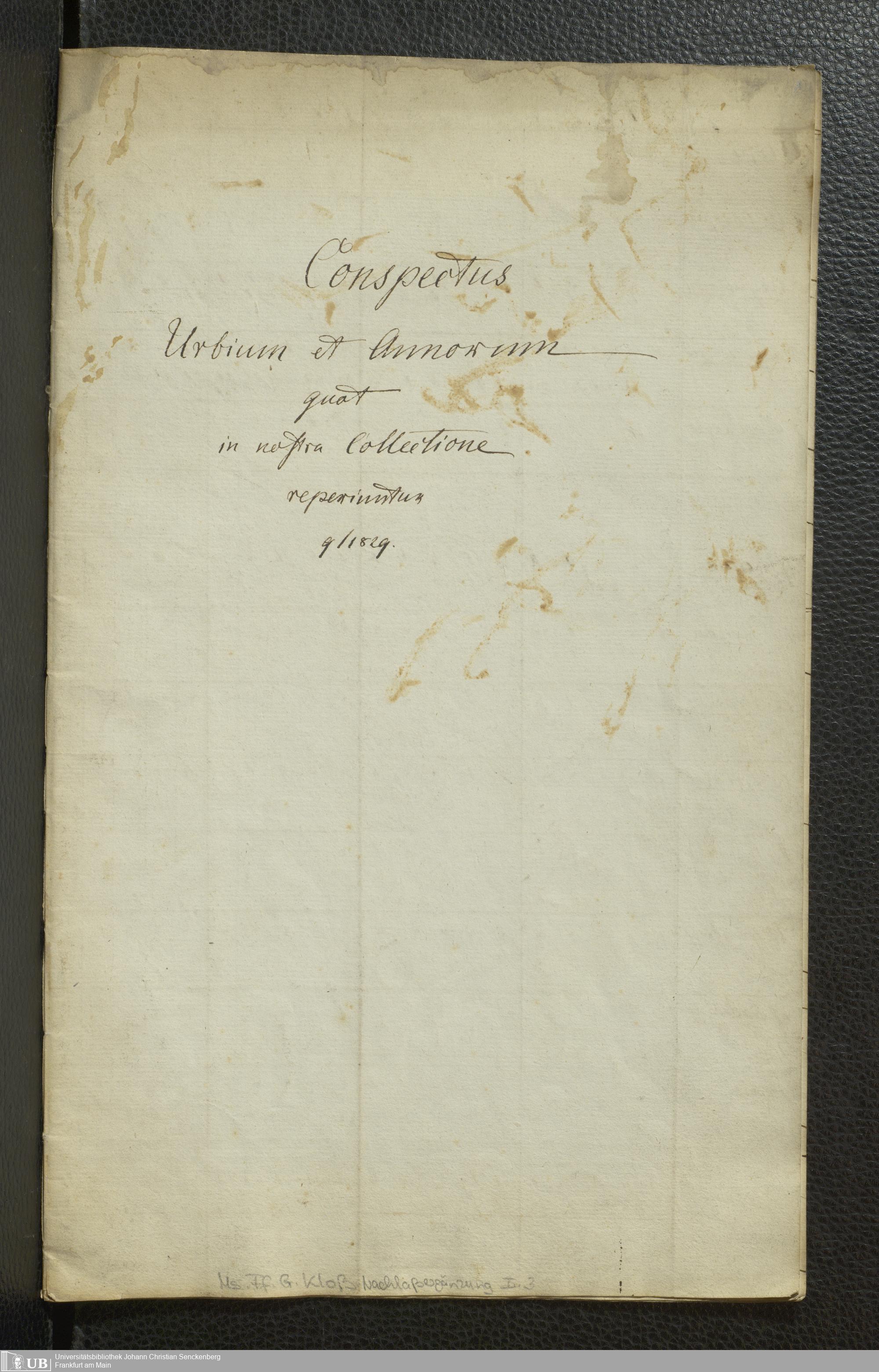 Ms. Ff. G. Kloß Nachlaßergänzung I.3 - Conspectus urbium et annorum quot in nostra collectione reperiuntur
