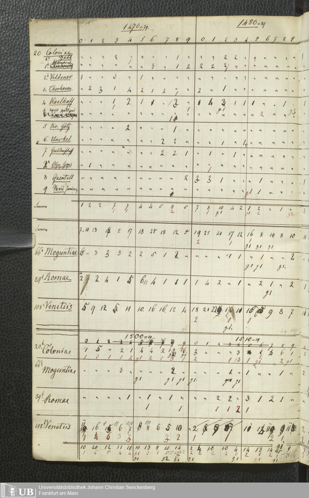 Ms. Ff. G. Kloß Nachlaßergänzung I.3 - Conspectus urbium et annorum quot in nostra collectione reperiuntur