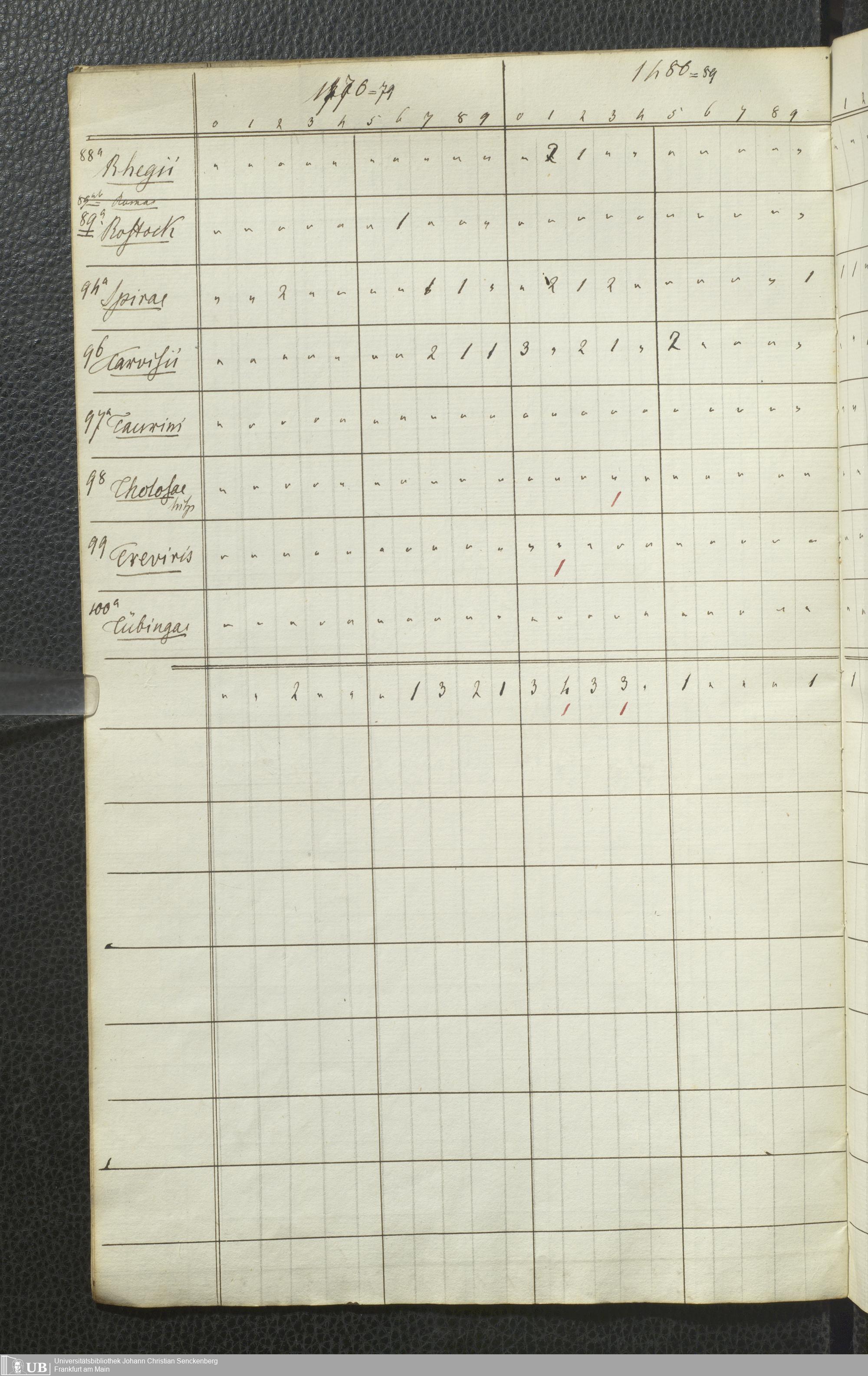 Ms. Ff. G. Kloß Nachlaßergänzung I.3 - Conspectus urbium et annorum quot in nostra collectione reperiuntur