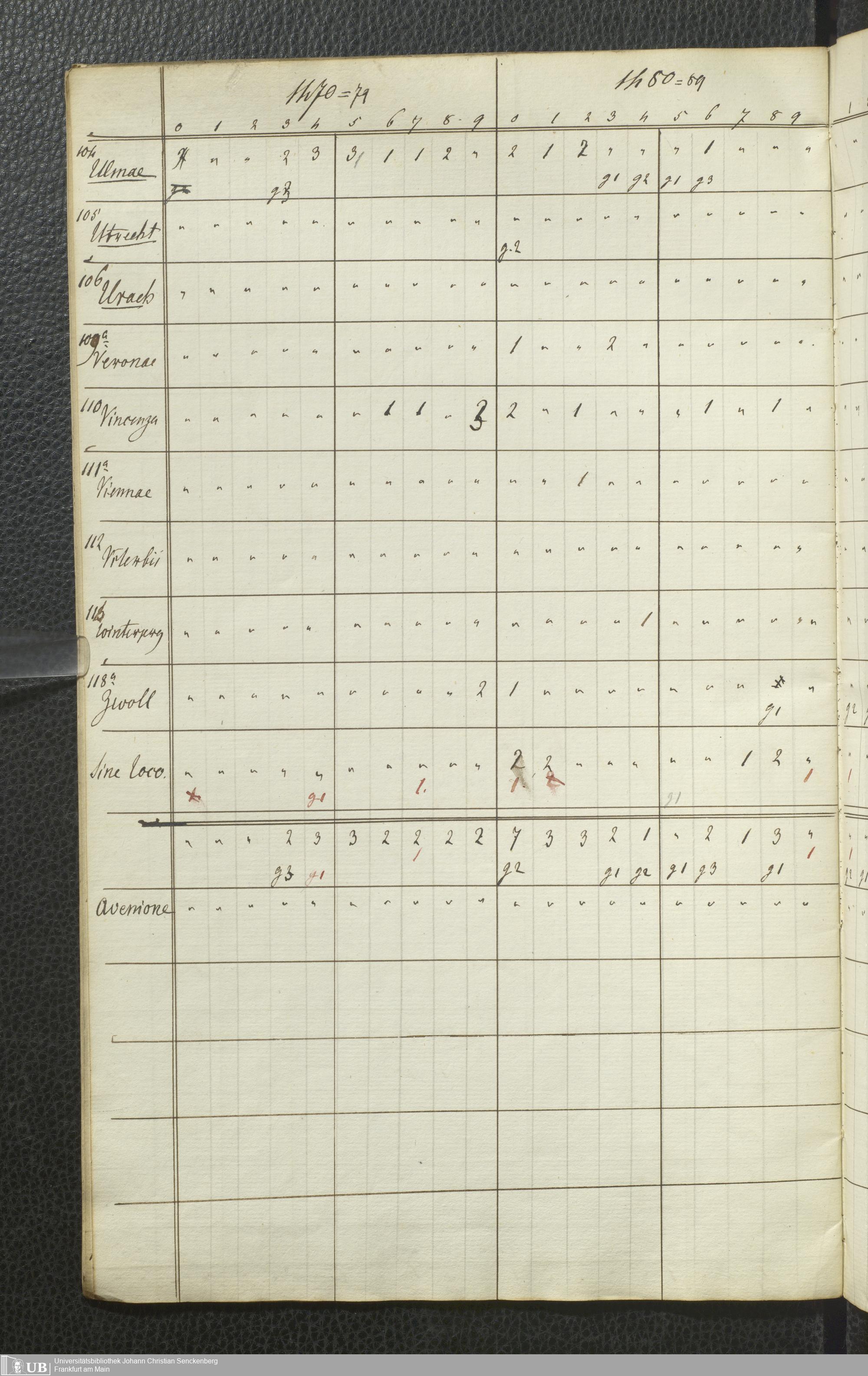 Ms. Ff. G. Kloß Nachlaßergänzung I.3 - Conspectus urbium et annorum quot in nostra collectione reperiuntur