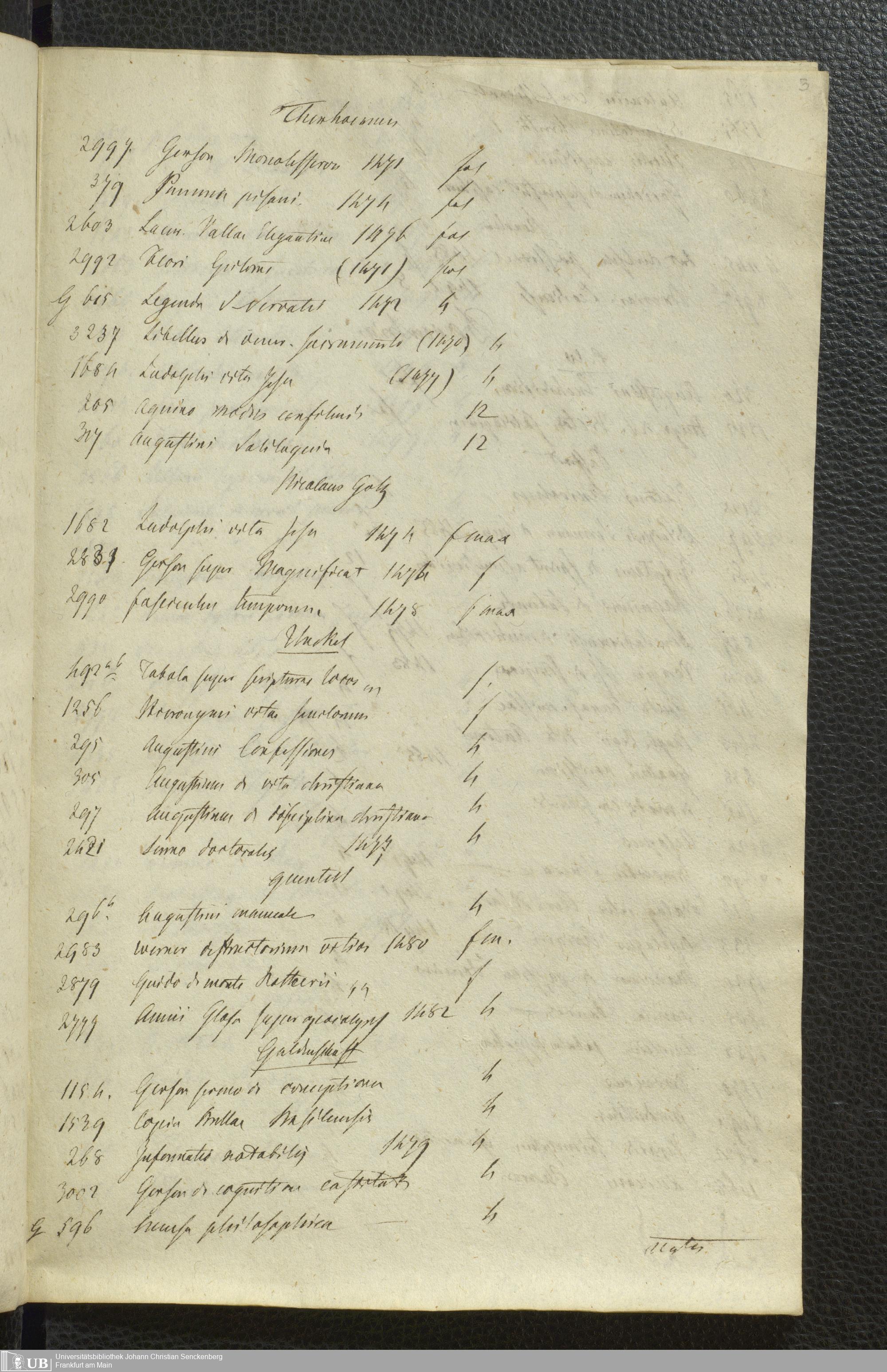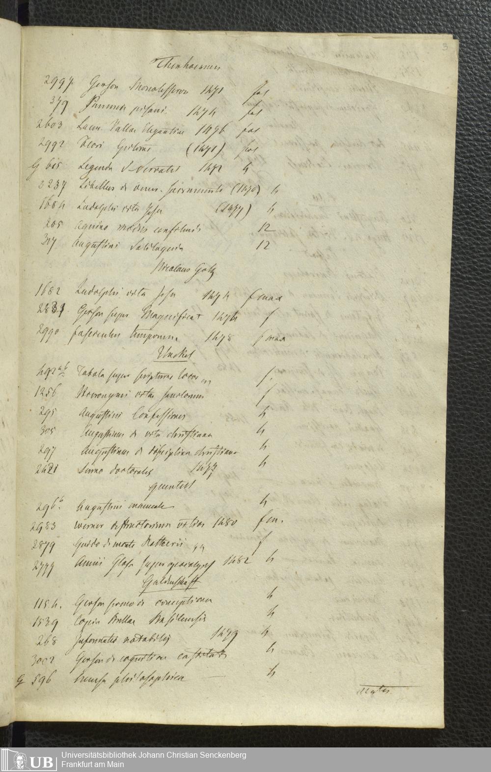 Ms. Ff. G. Kloß Nachlaßergänzung I.7 - Verzeichnis früher Drucke, alphabetisch nach Druckorten und Druckern