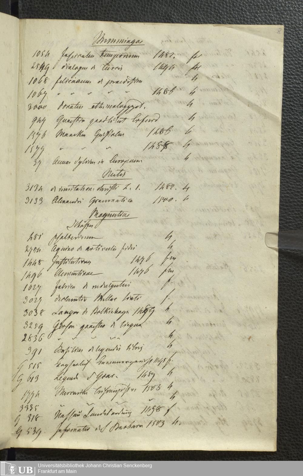 Ms. Ff. G. Kloß Nachlaßergänzung I.7 - Verzeichnis früher Drucke, alphabetisch nach Druckorten und Druckern