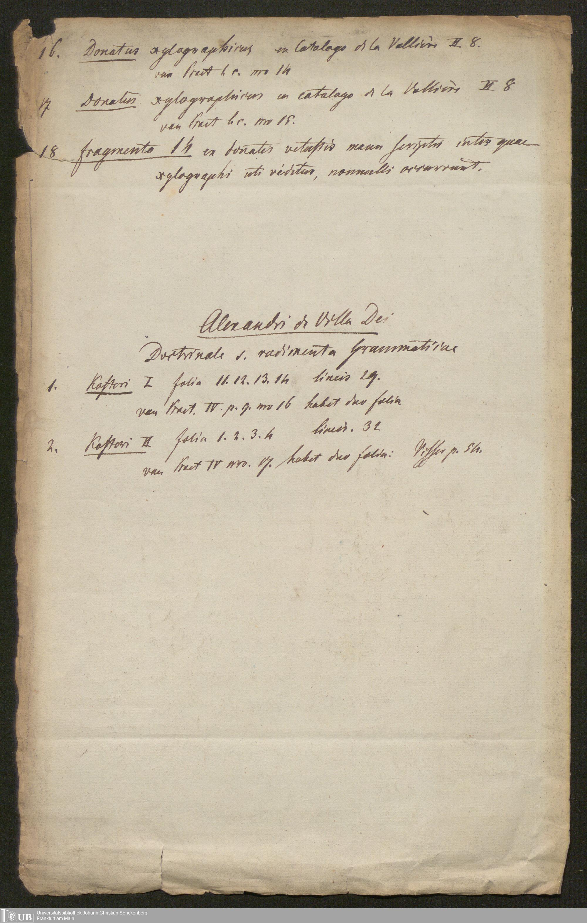 Ms. Ff. G. Kloß V.8.3 Ergänzungen - Donatus: Ars minor