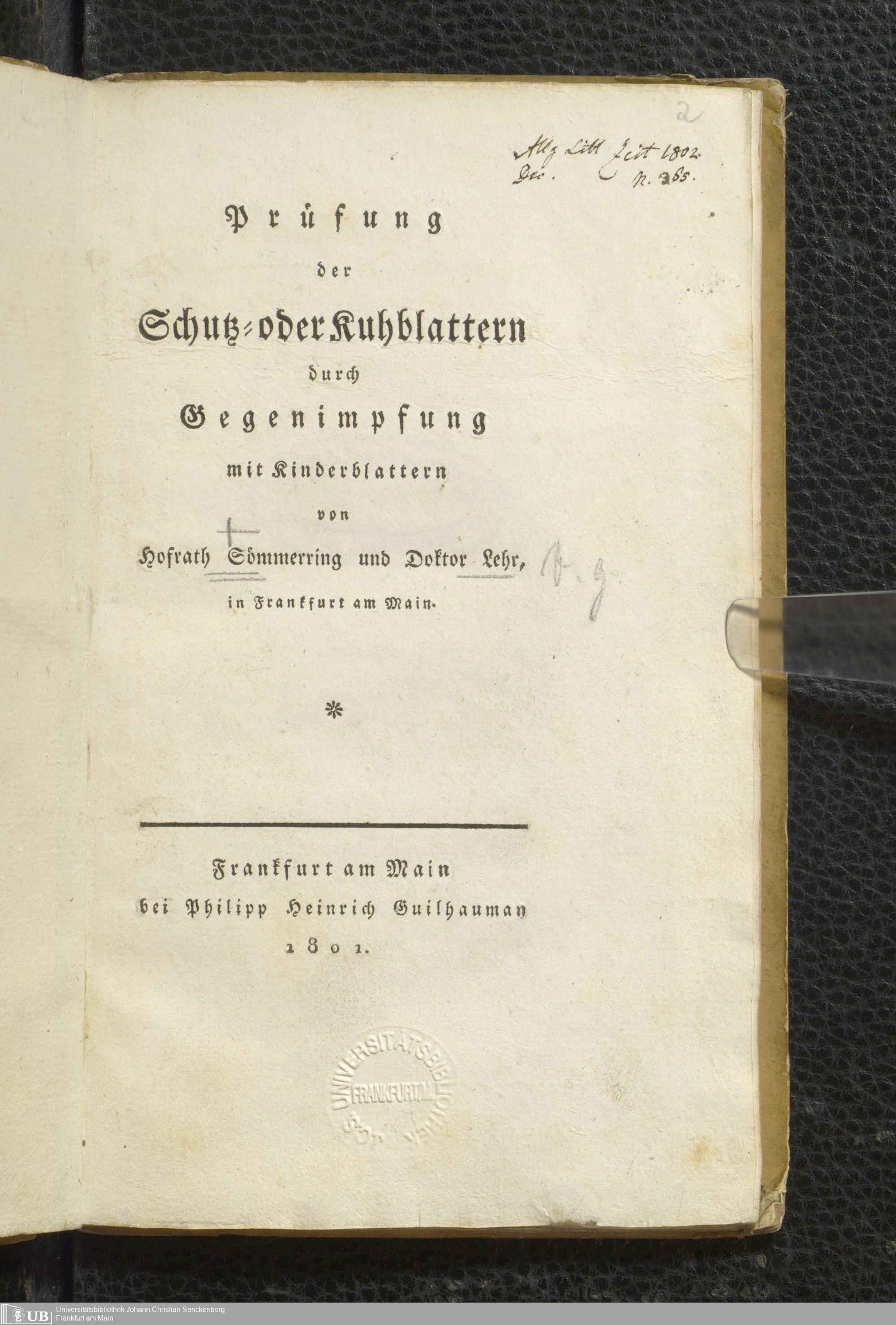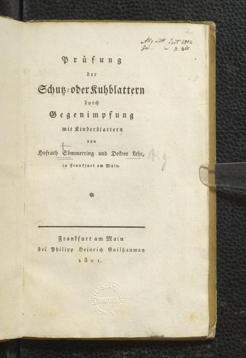 Soe 12 - Prüfung der Schutz- oder Kuhblattern durch Gegenimpfung mit Kinderblattern