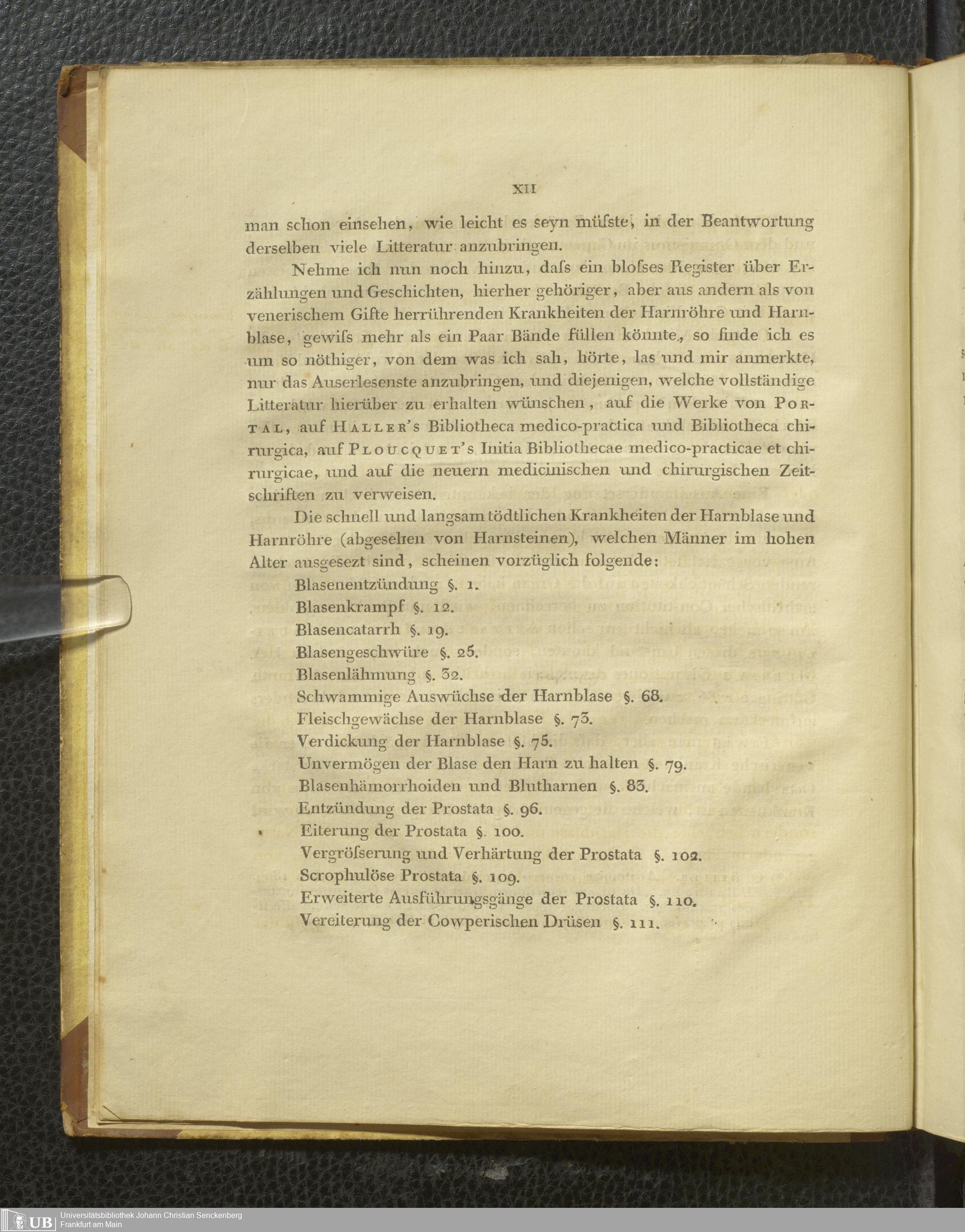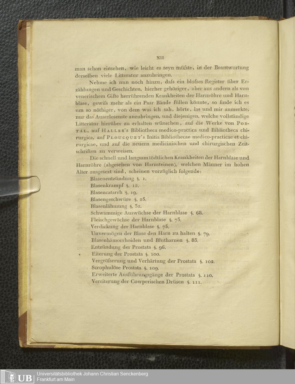 Soe 18 - Abhandlung über die schnell und langsam tödtlichen Krankheiten der Harnblase und Harnröhre bey Männern im hohen Alter. Gekrönte Beantwortung einer von der K. K. Medicinisch-chirurgischen Josephinischen Academie zu Wien in den Jahren 1806 und 1807 aufgestellten Preisfrage