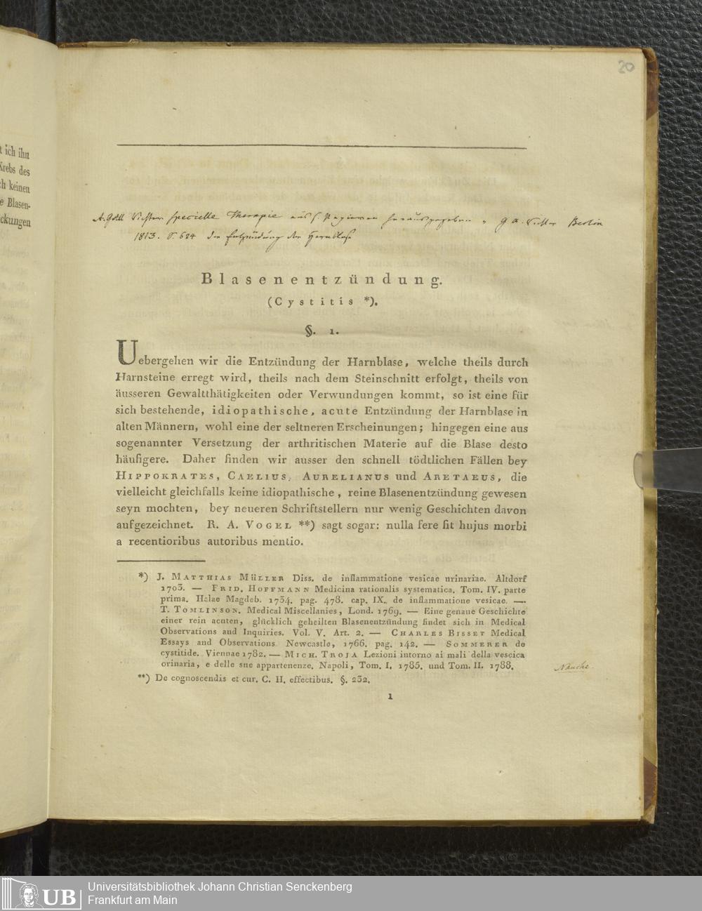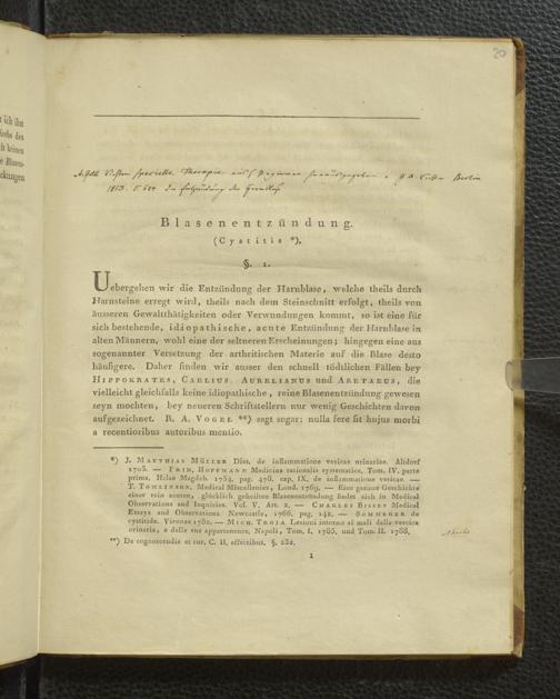 Soe 18 - Abhandlung über die schnell und langsam tödtlichen Krankheiten der Harnblase und Harnröhre bey Männern im hohen Alter. Gekrönte Beantwortung einer von der K. K. Medicinisch-chirurgischen Josephinischen Academie zu Wien in den Jahren 1806 und 1807 aufgestellten Preisfrage