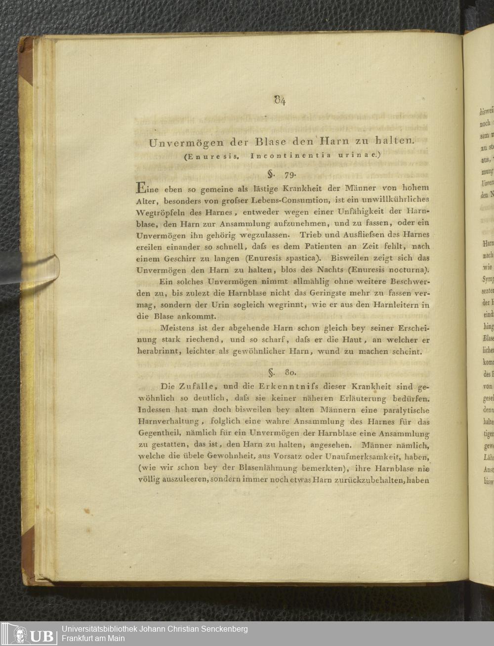 Soe 18 - Abhandlung über die schnell und langsam tödtlichen Krankheiten der Harnblase und Harnröhre bey Männern im hohen Alter. Gekrönte Beantwortung einer von der K. K. Medicinisch-chirurgischen Josephinischen Academie zu Wien in den Jahren 1806 und 1807 aufgestellten Preisfrage