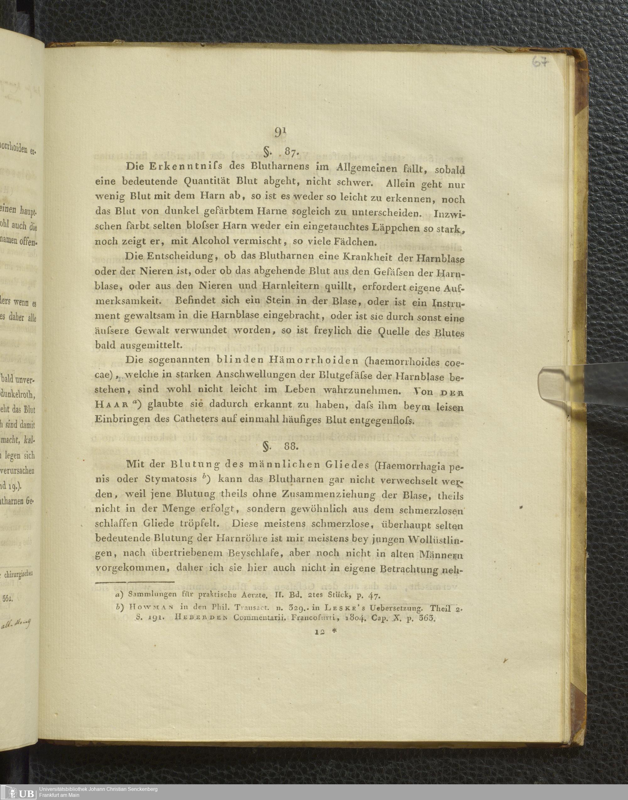 Soe 18 - Abhandlung über die schnell und langsam tödtlichen Krankheiten der Harnblase und Harnröhre bey Männern im hohen Alter. Gekrönte Beantwortung einer von der K. K. Medicinisch-chirurgischen Josephinischen Academie zu Wien in den Jahren 1806 und 1807 aufgestellten Preisfrage