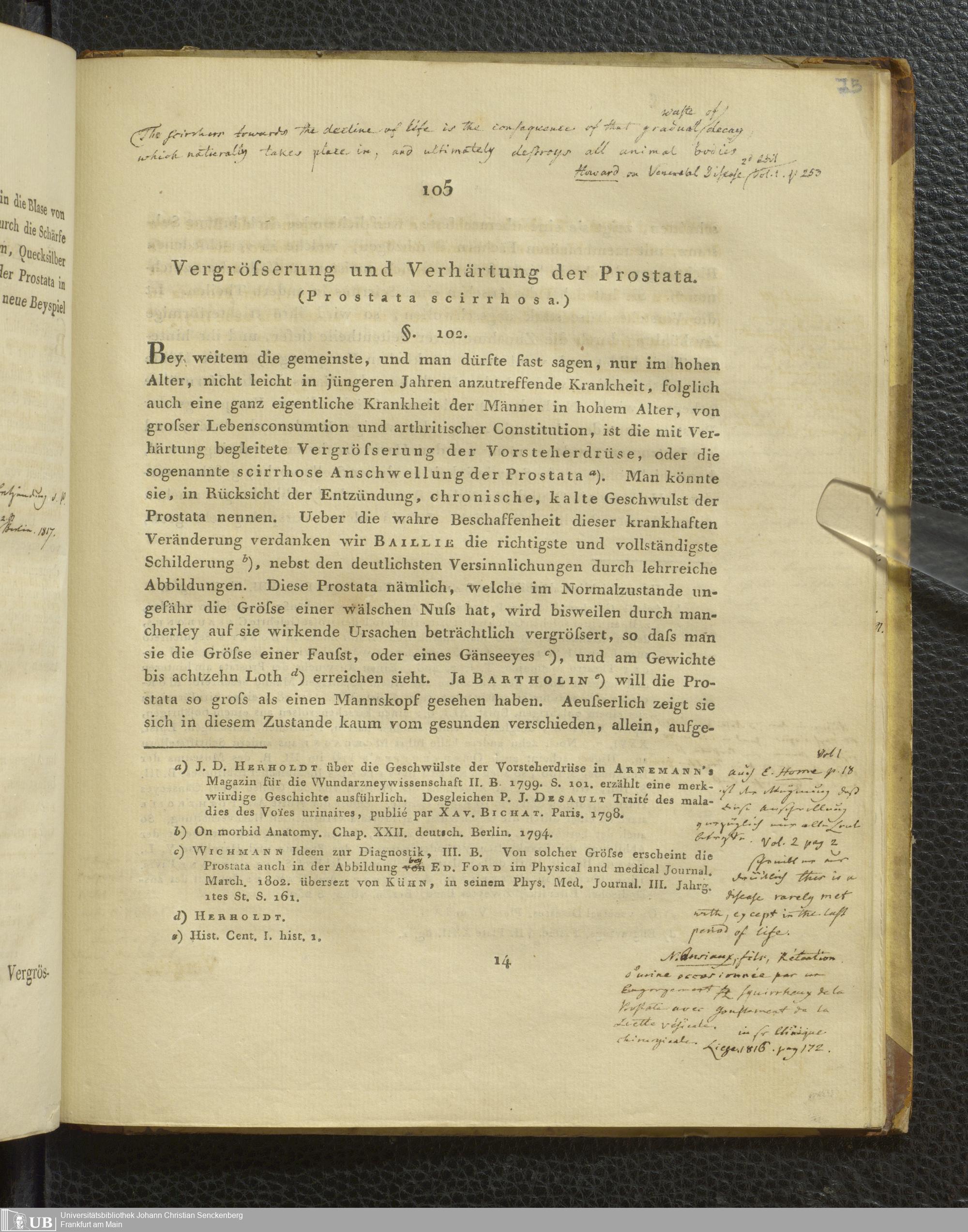 Soe 18 - Abhandlung über die schnell und langsam tödtlichen Krankheiten der Harnblase und Harnröhre bey Männern im hohen Alter. Gekrönte Beantwortung einer von der K. K. Medicinisch-chirurgischen Josephinischen Academie zu Wien in den Jahren 1806 und 1807 aufgestellten Preisfrage
