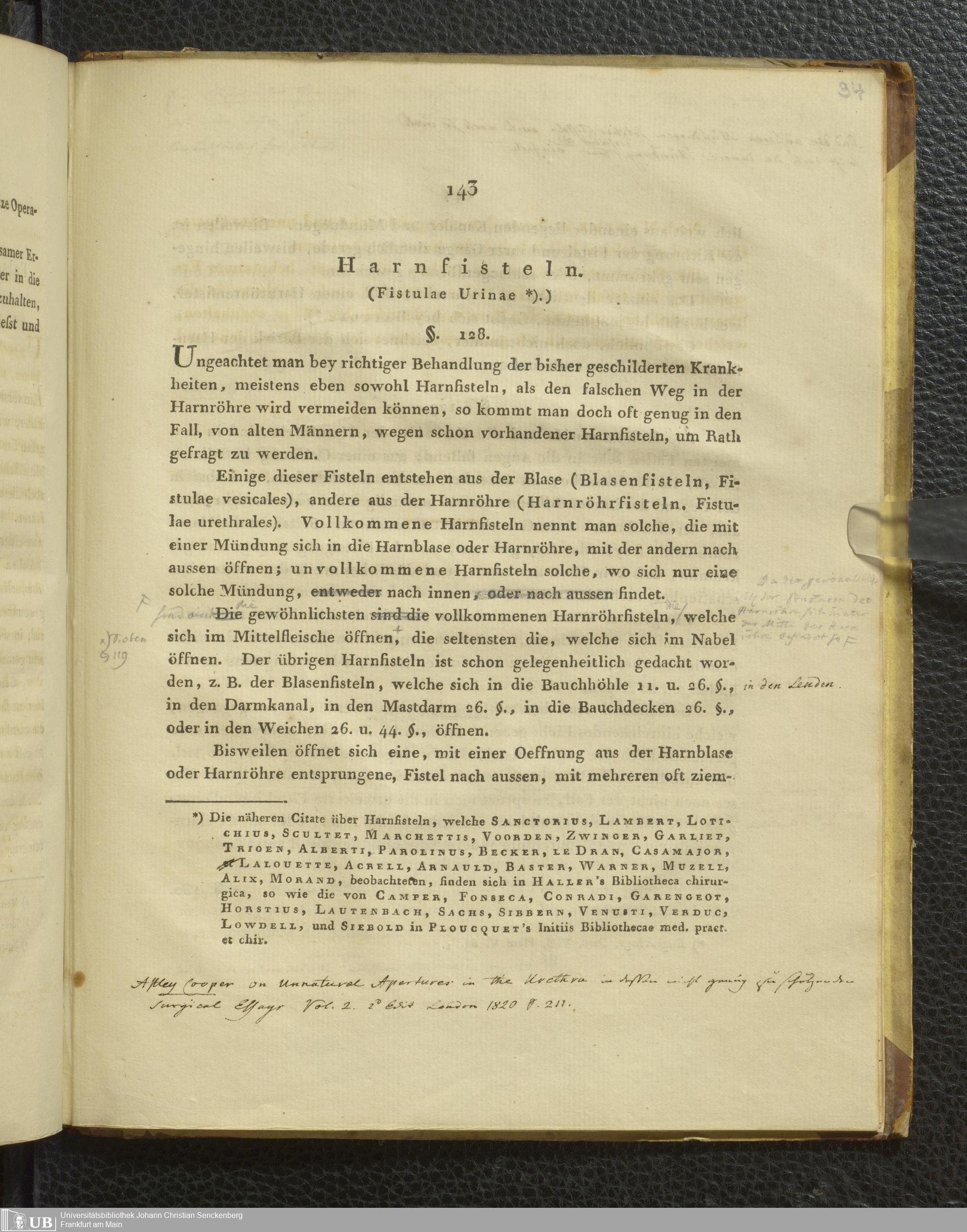 Soe 18 - Abhandlung über die schnell und langsam tödtlichen Krankheiten der Harnblase und Harnröhre bey Männern im hohen Alter. Gekrönte Beantwortung einer von der K. K. Medicinisch-chirurgischen Josephinischen Academie zu Wien in den Jahren 1806 und 1807 aufgestellten Preisfrage