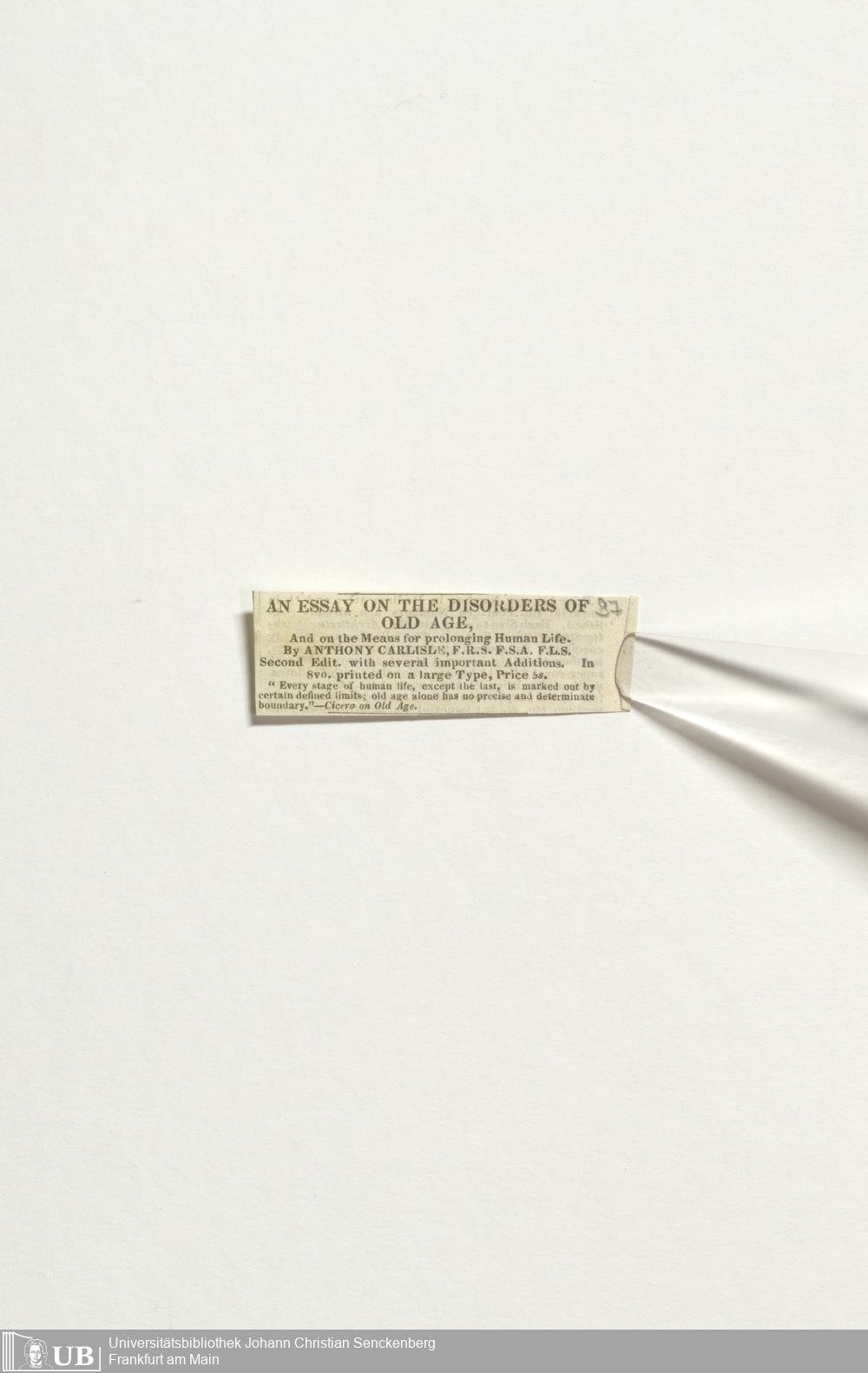 Soe 18 - Abhandlung über die schnell und langsam tödtlichen Krankheiten der Harnblase und Harnröhre bey Männern im hohen Alter. Gekrönte Beantwortung einer von der K. K. Medicinisch-chirurgischen Josephinischen Academie zu Wien in den Jahren 1806 und 1807 aufgestellten Preisfrage