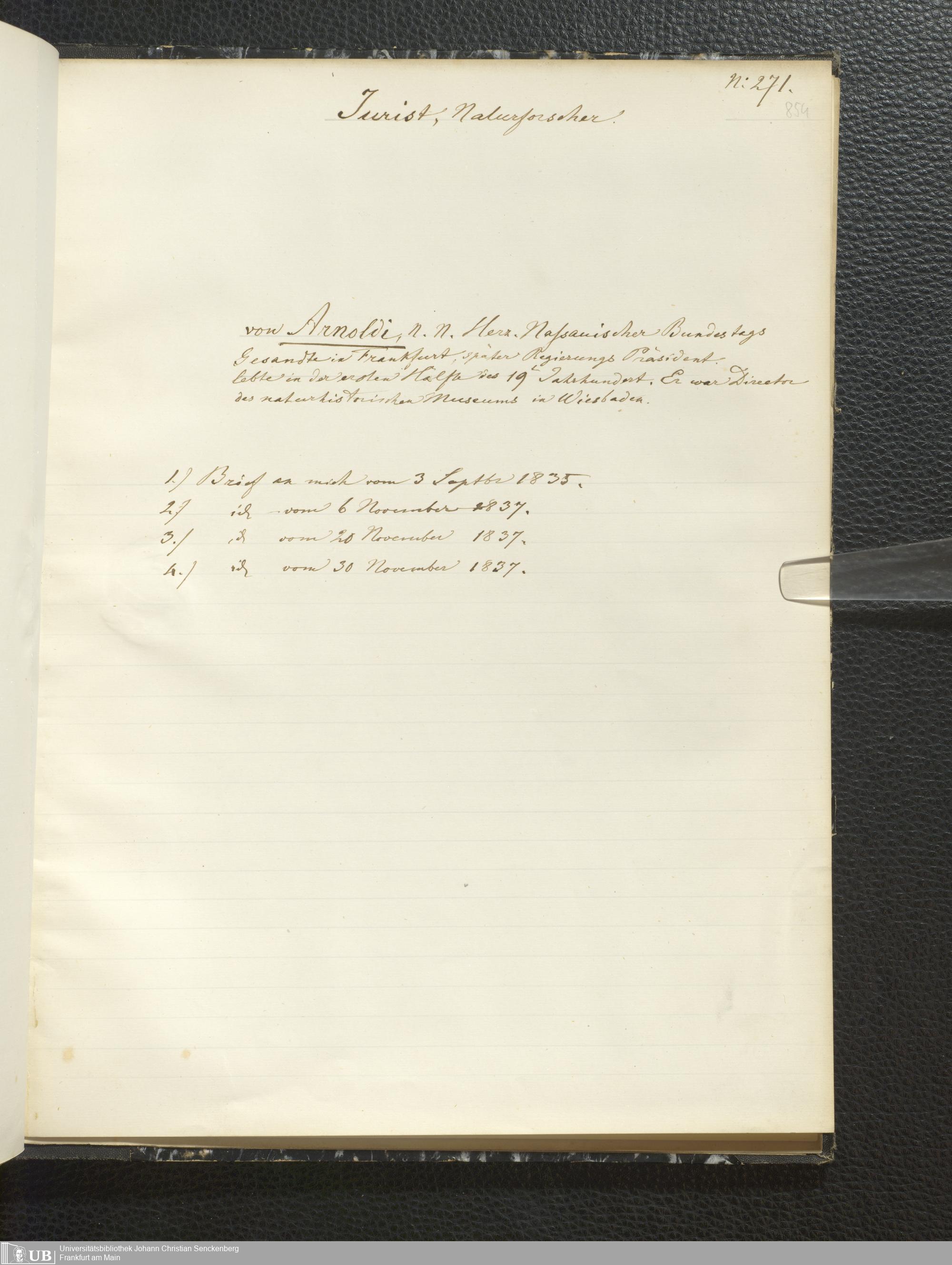 4˚ Hs 6 Bd. 2 - Briefe an Dr. Eduard Rüppell aus den Jahren 1819 bis 1878