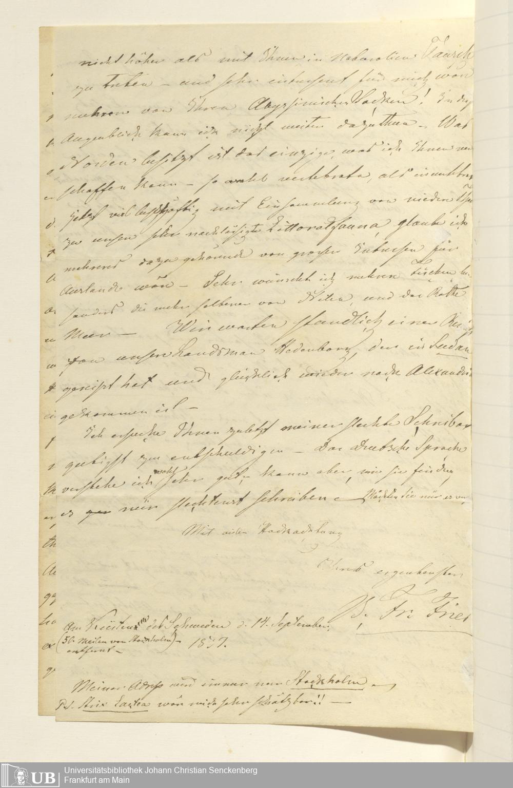 4˚ Hs 6 Bd. 2 - Briefe an Dr. Eduard Rüppell aus den Jahren 1819 bis 1878