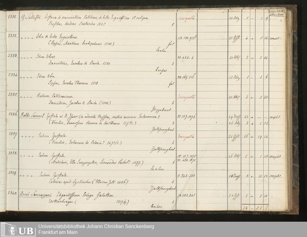 Ms. Ff. G. Kloß III.6 Bd. 2 - Catalogus Bibliothecae G. Kloss. Palaeotyporum Latinorum L - Z