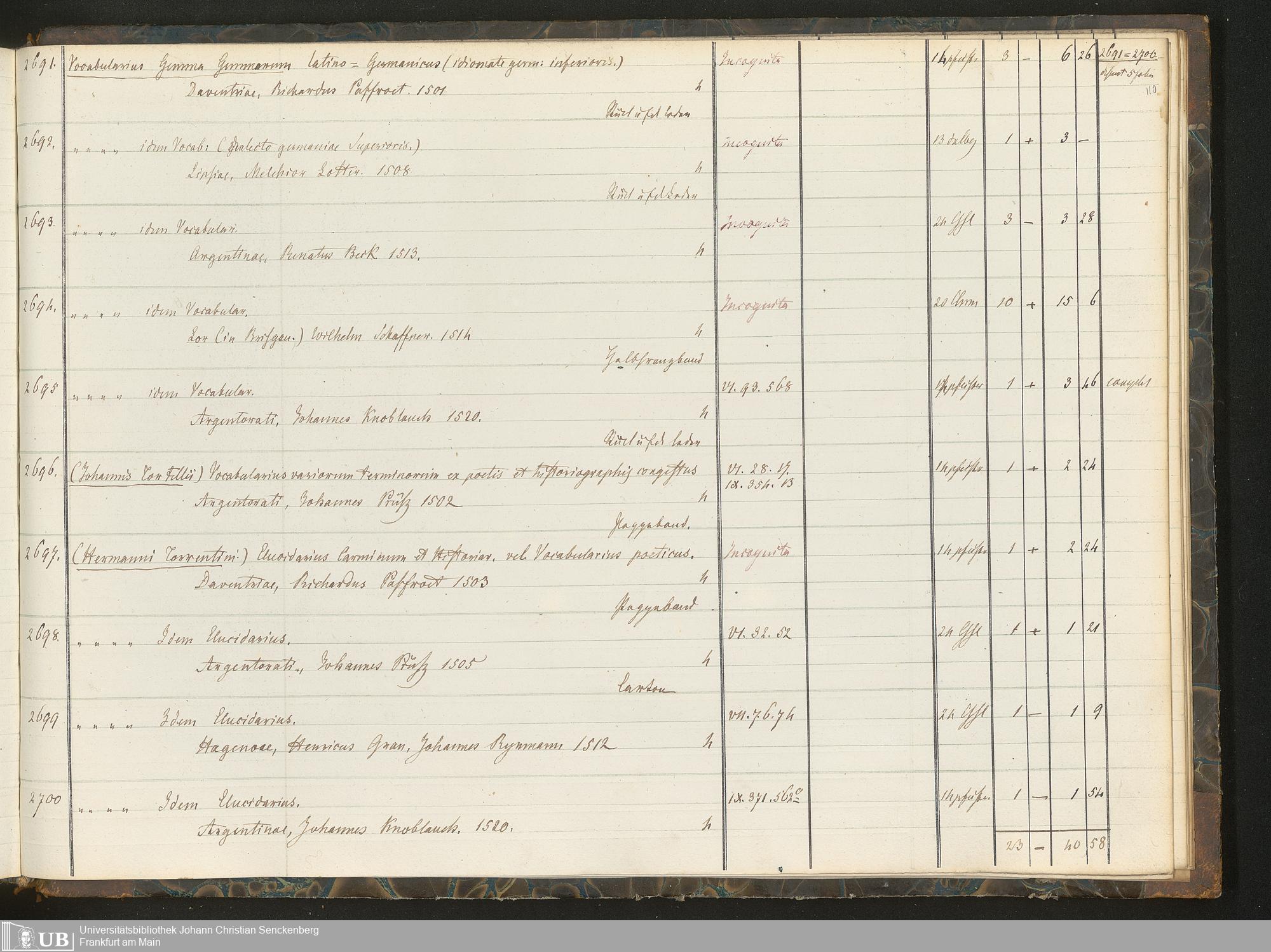 Ms. Ff. G. Kloß III.6 Bd. 2 - Catalogus Bibliothecae G. Kloss. Palaeotyporum Latinorum L - Z