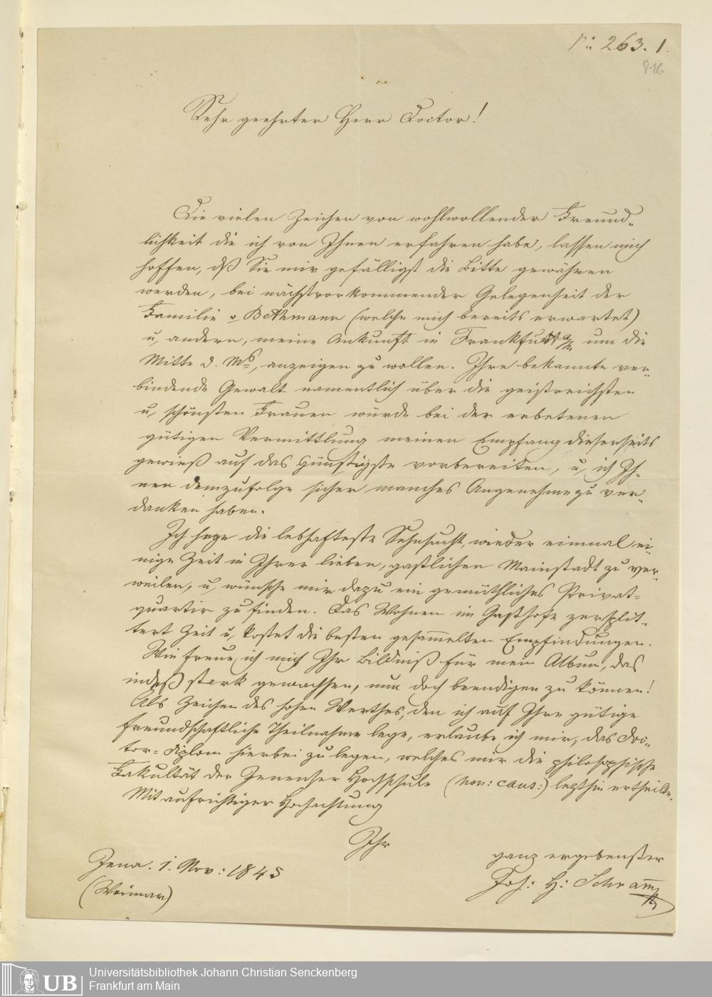 4˚ Hs 6 Bd. 2 - Briefe an Dr. Eduard Rüppell aus den Jahren 1819 bis 1878